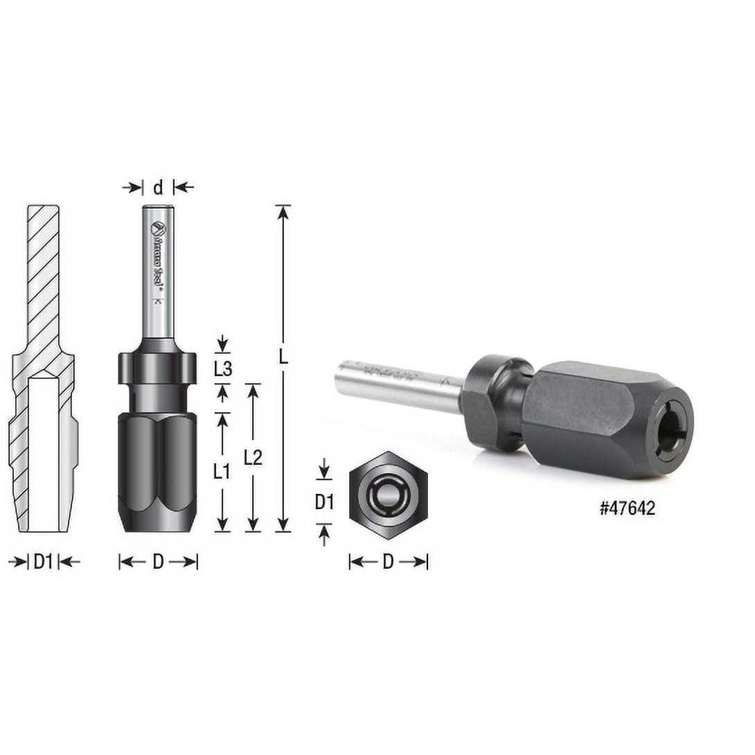 Amana Tool 47642 1/4 Shank CNC Extension Adapter for 1/4 Shank Router Bits