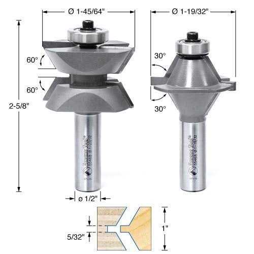 Amana Tool 55468 2-Piece Carbide Tipped Edge Banding 30 Deg x 1-19/32 Dia x 1 inch x 1/2 Shank Set