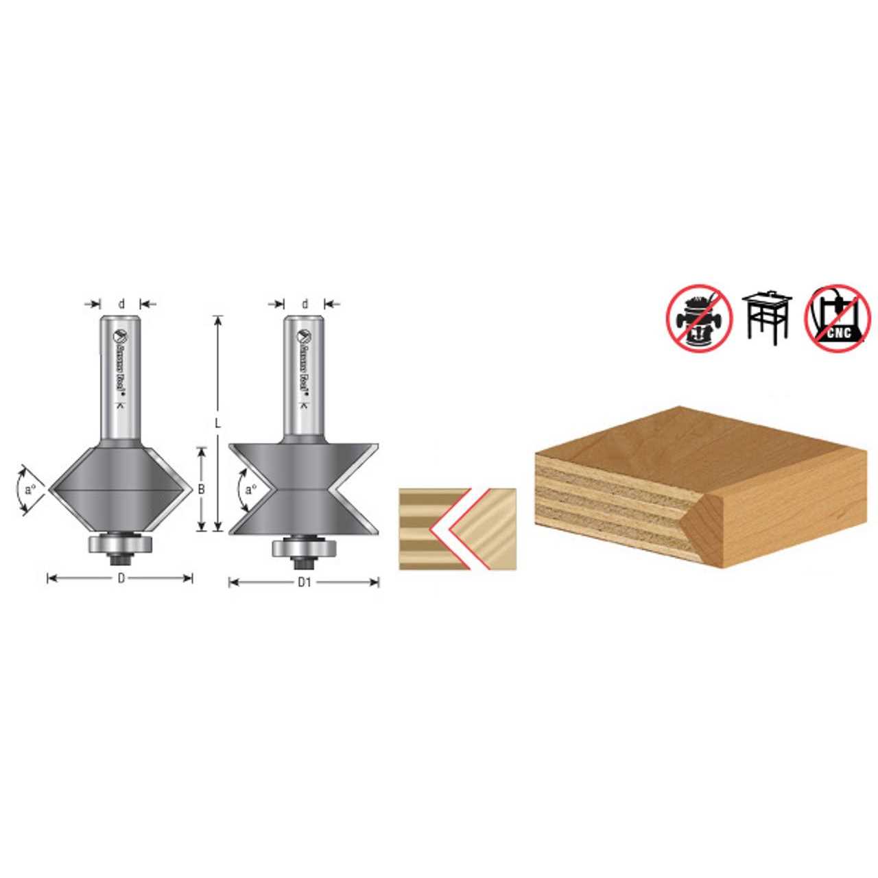 This two-piece bit set provides an economical way to create your own edge banding from the wood of your choice. This is a great way to create a finished edge on plywood or MDF panels and shelves which blends perfectly with the rest of your project.Using this bit set is simple too. Just position each bit so that it is centered on the stock thickness and make the cut. The 90 degree bits can also be used to create V-grooves or double-sided chamfers. The 60 degree set creates a larger surface area for glue.1/2″ shank two flutes carbide tipped for long life. For stock 3/4″ to 1″ in thickness.For use only in a table-mounted router.