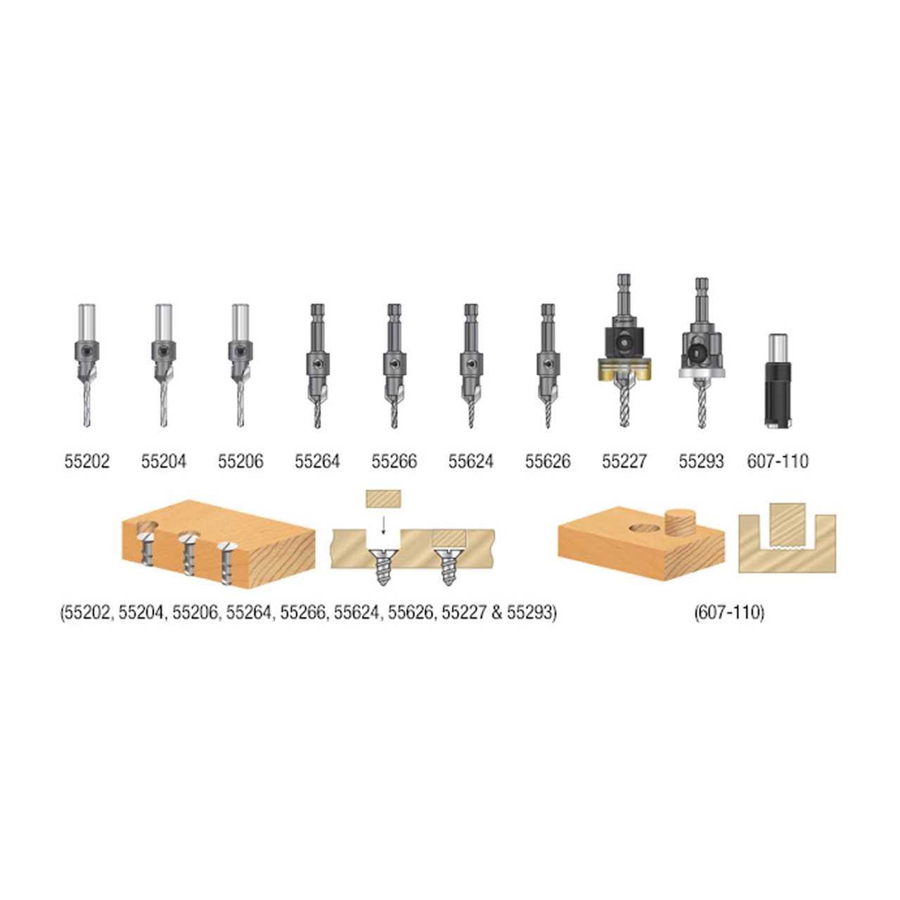 IDEAL FOR EVERY WOODWORKER – 82 Degree Countersinks with Adjustable Drill Bit Depth Stop and No-Thrust Ball Bearing. IDEAL SET FOR – Countersink drill bits and plug cutter set is used to countersink holes for the heads of screws in woods, plastic, and non-ferrous materials. EXCELLENT FOR CUTTING – Use the drill bits for wood-working of Natural Woods, Man-Made Boards, MDF, Chipboard, Plywood, Aluminum/Non-Ferrous, Aluminum Composite Material (ACM), Composites, Composite Decking Materials. CARBIDE TIPPED – Special carbide-tipped drill bits that provide chip-free hole edges and last much longer than steel countersinks. INDUSTRIAL-QUALITY TOOLS – Amana Tool is a worldwide leading tool provider with USA-based corporate headquarters and warehouse, specializing in industrial-quality cutting tools. The heavy-duty, revolving depth-stop and strong thrust ball bearing allow for quick and easy adjustment of the countersink depth without scratching or burning surfaces. The wood drill bit set is the ideal tool set for every woodworker. Special carbide-tipped countersinks that provide chip-free hole edges and last much longer than steel countersinks. Excellent For Cutting: Natural Woods, Man-Made Boards, MDF, Chipboard, Plywood, Aluminum/Non-Ferrous, Aluminum Composite Material (ACM), Composite Decking Materials.