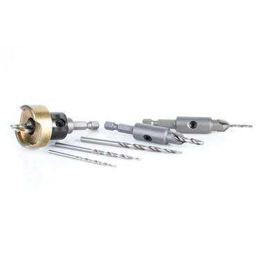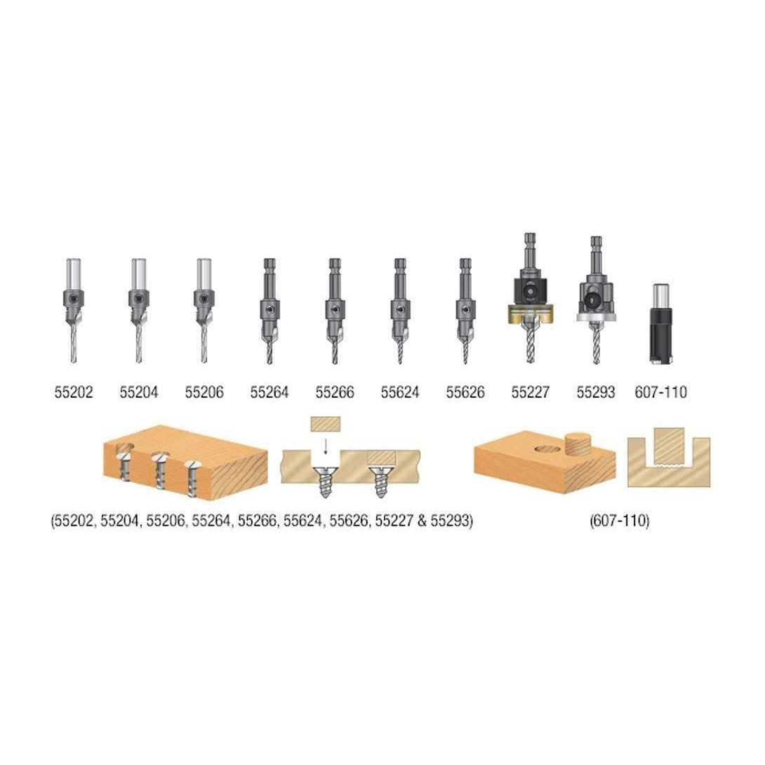 Amana Tool AMS-628 6-Pc Carbide Tipped Countersink with Adjustable Depth Stop and No-Thrust No Marring Ball Bearing Set with Quick Release Shank and
