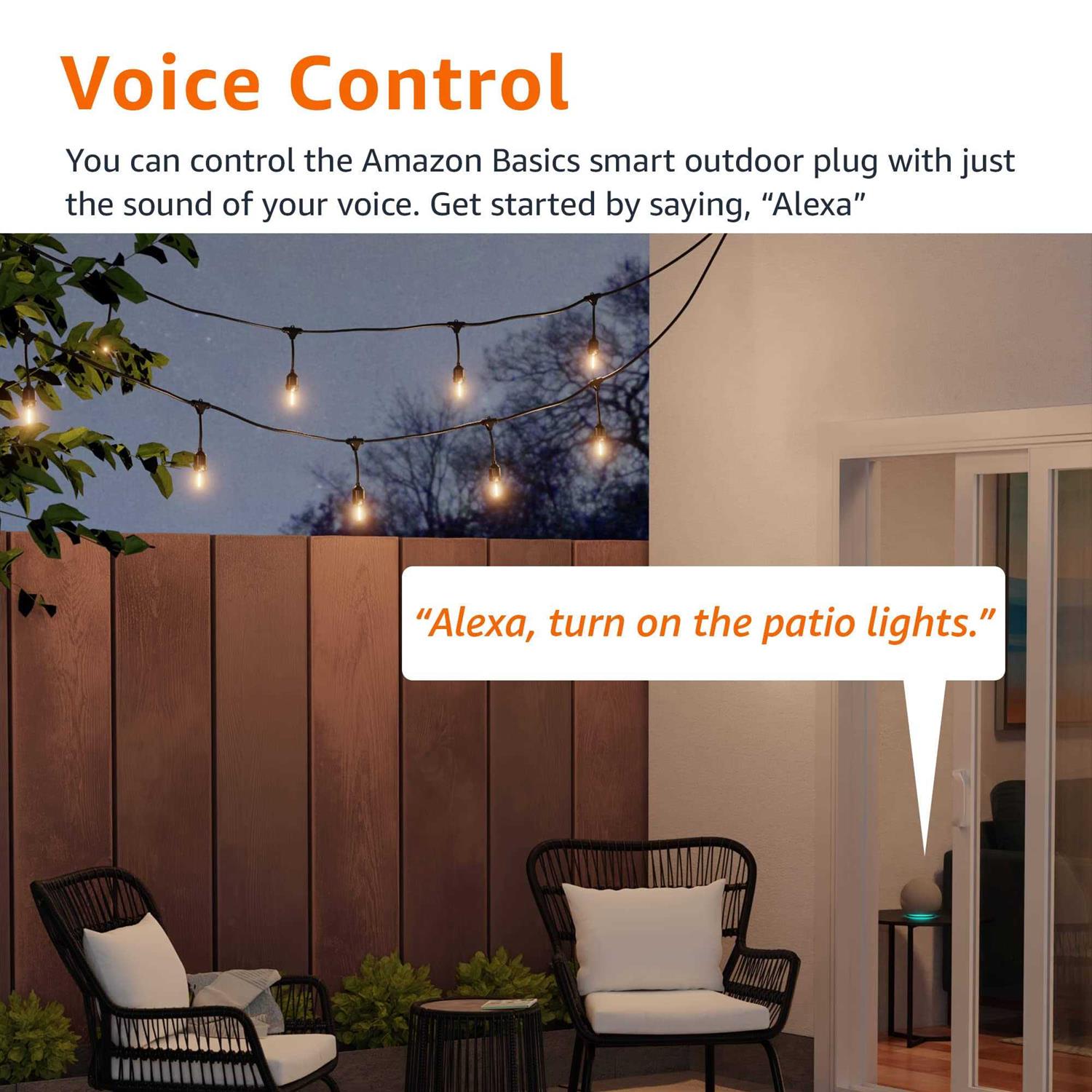 - SMART UPGRADE: Amazon Basics Smart Outdoor Plug works with Alexa to add remote and voice control to traditional outdoor lightings and devices.