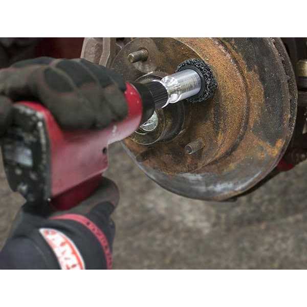 - Removes rust, corrosion and other build-up from wheel stud, drums and tire rim