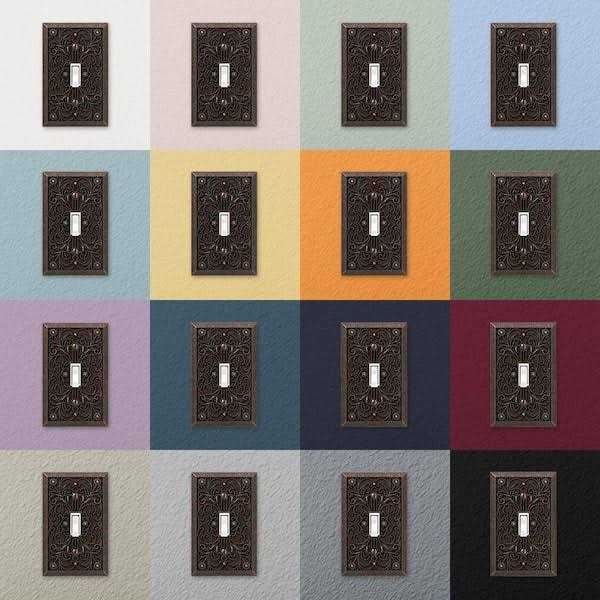 Manufactured by Amerelle, the leader in decorative wall plates and hardware. Made from durable stamped metal, this stylish wall plate does more than just cover electrical boxes, adding a simple elegance to your decor. Decorating with wall plates is an easy and inexpensive way to make an immediate impact in your home. They provide a charming upgrade to your standard plastic ones by adding a refined, decorative accent to any room in your house. Color: Bronze.