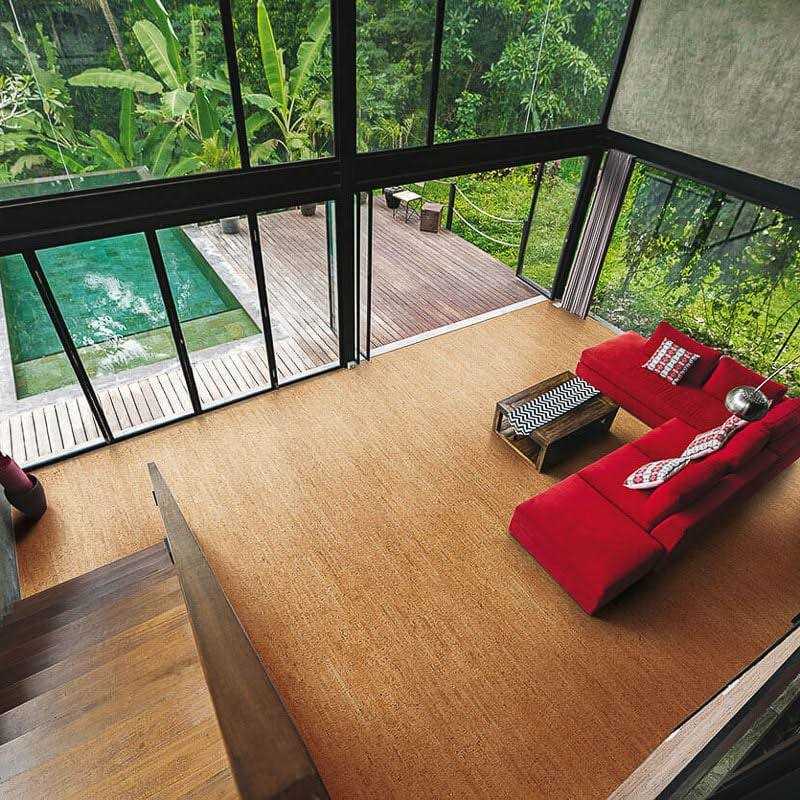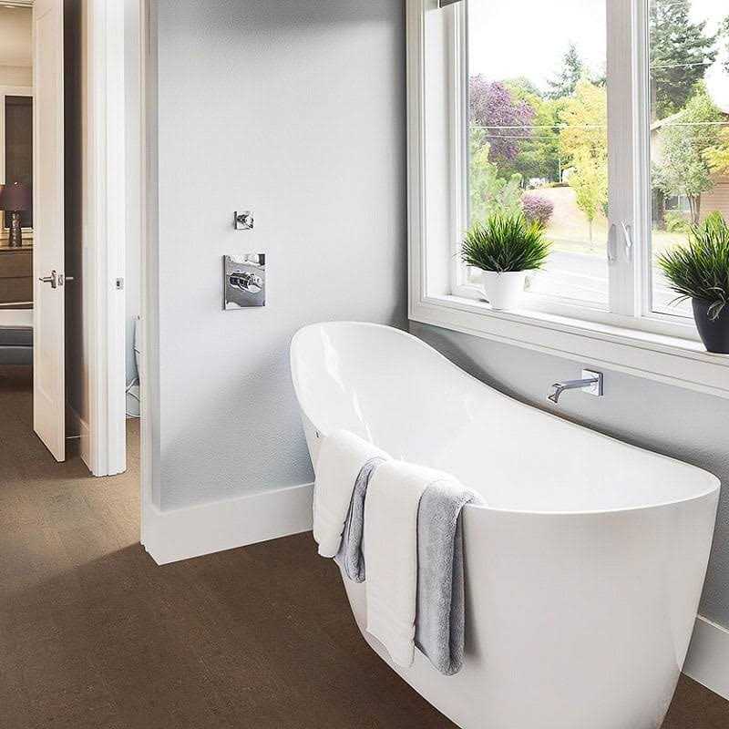 Prefinished Engineered Floating Cork Flooring with Integrated Cork Underlayment. Water-Resistant, Kid-and-Pet-Proof, PVC-Free, and Ideal for All Rooms. 7.5″ x 48″ x 7mm Planks – 20.04 SqFt / box X $7.79 = $156.11/box. DIY Glueless Installation. Lane Antique White is a light tan color with darker strips of scattered throughout the cork pattern.