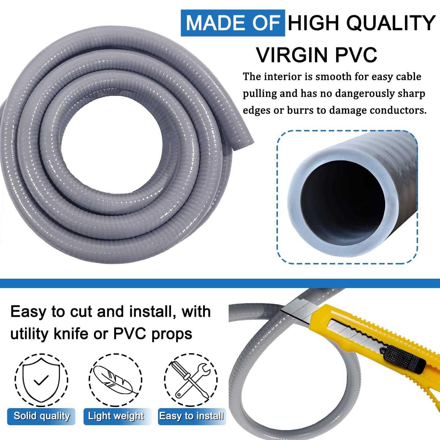 Flexible Electrical Conduit 1/2 inch 50ft,Liquid-Tight Conduit and Connector Kit,Liquid Tight Flexible Electrical Conduit 1/2 Flexible Conduit with