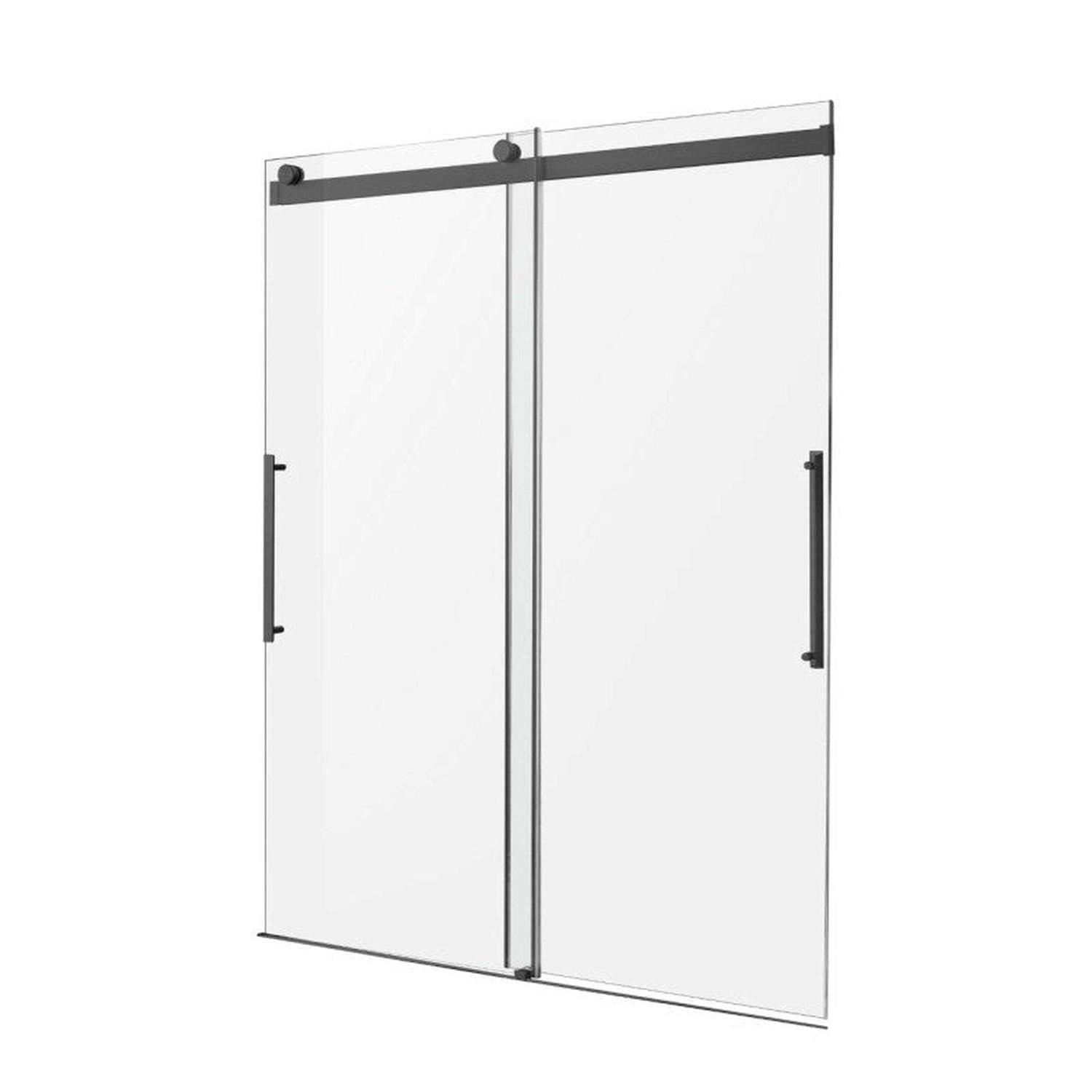Anzzi SD-FRLS05902MB Stellar Series 60 in. x 76 in. Frameless Sliding Shower Door with Handle in Matte Black