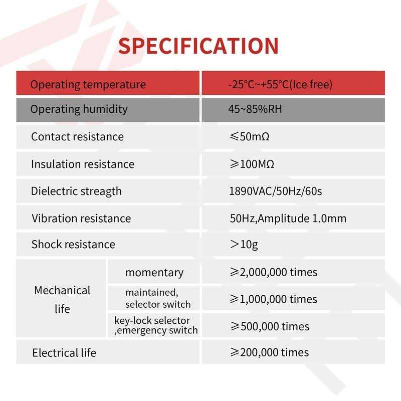 - Mounting Size: 22mm, Operation Type: Maintained (Latching).