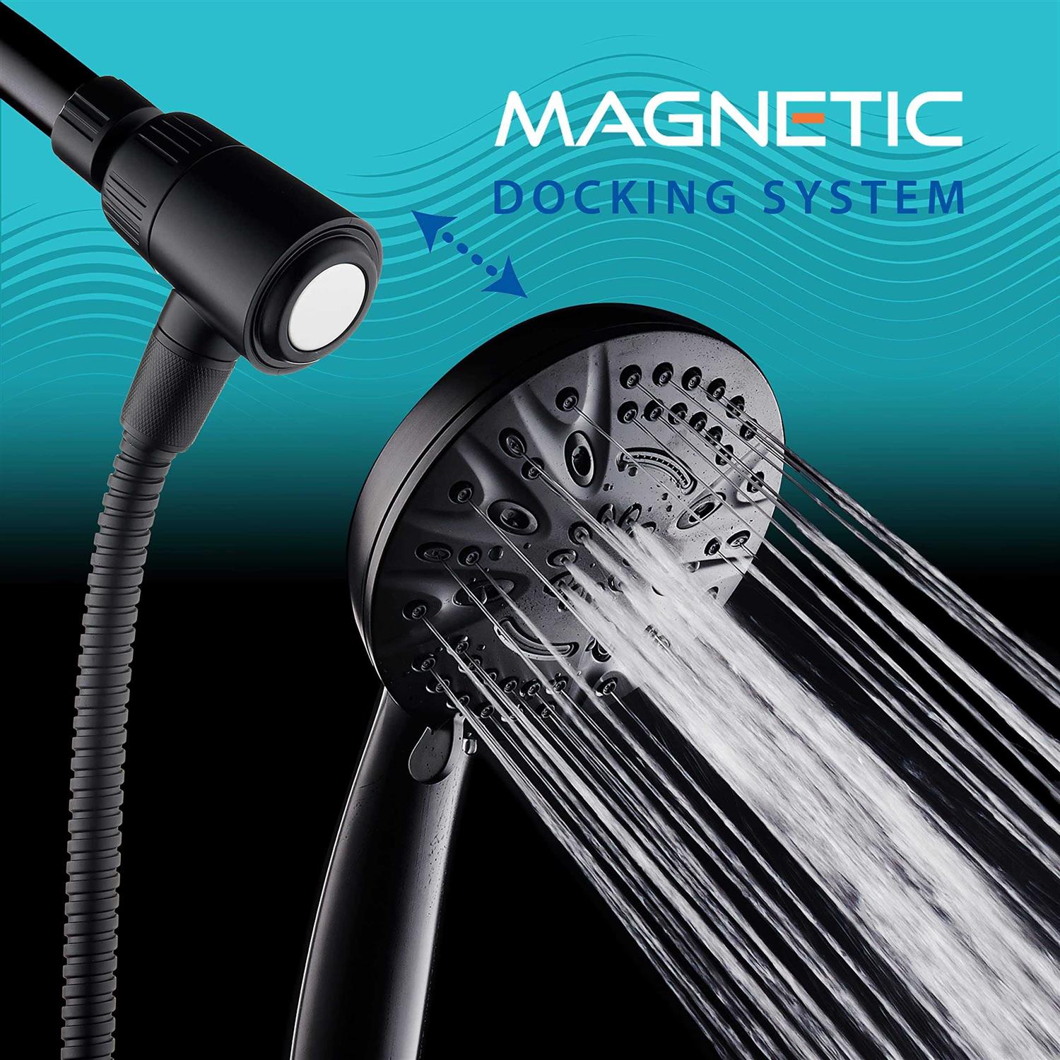 AquaDance New Magnetic Guidance Docking System – High-Pressure 8-Setting Handheld Shower Head with Giant 5 inch Face, Magnetic Bracket, Extra-Long