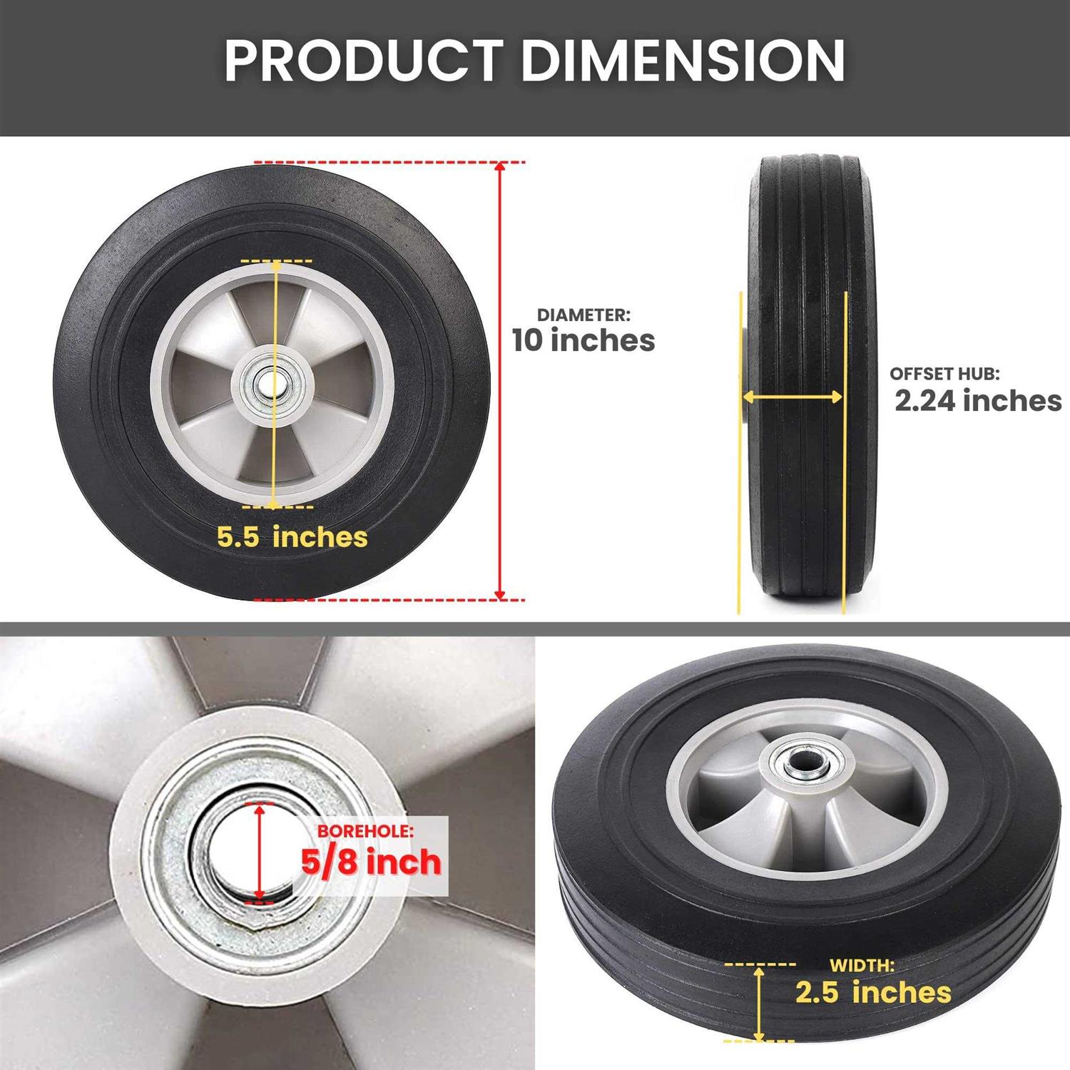 (2-Pack) AR-PRO 10×2 Flat Free Solid Rubber Replacement Tires (410350-4) – Flat-Free Tires for Hand Trucks and Wheelbarrows with 10A Tires with 58