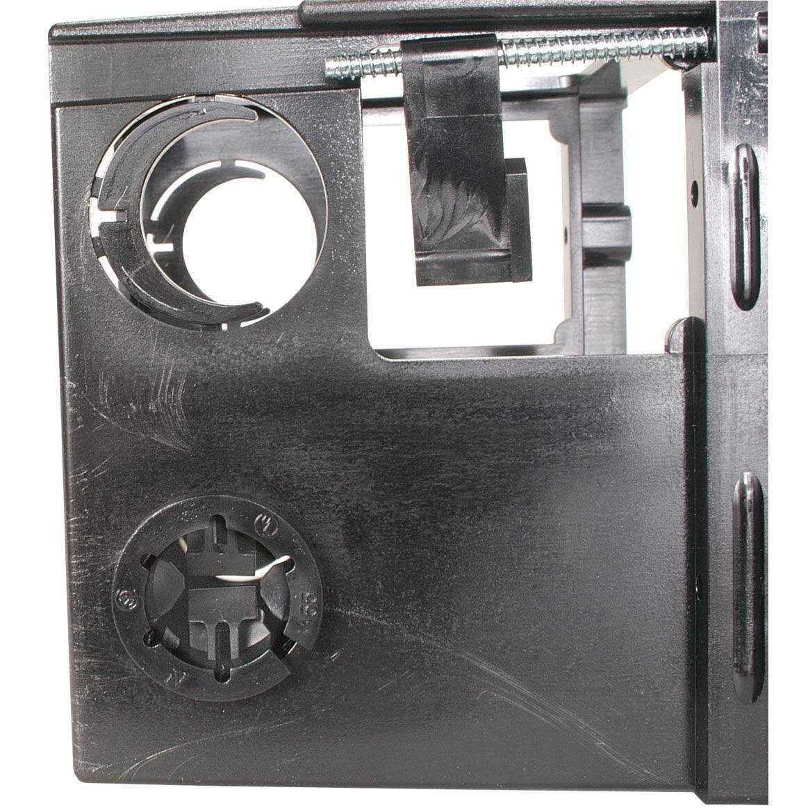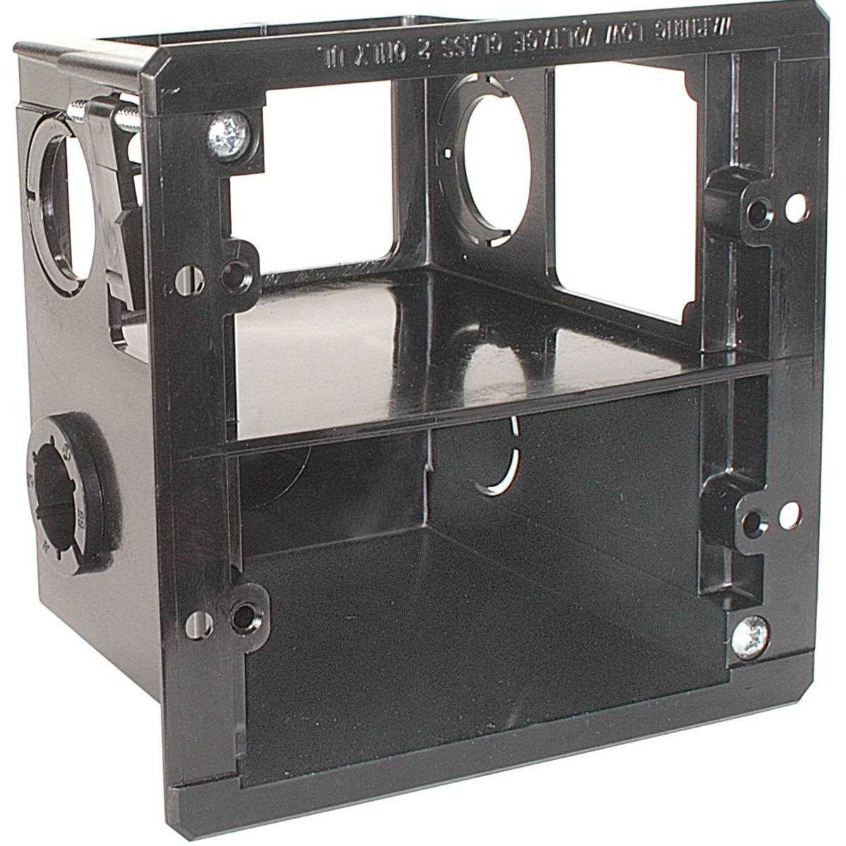 LVDR2 Bracket Streamline and simplify your retrofit project with Arlington’s LVDR2. This box allows you to combine one electrical and one low-voltage run into a single location, creating a clean look without any extra work. Designed for use with pre-existing construction, this combo bracket uses flip-up wings to stay fixed against the drywall. The tightening screw is easily accessible from the front of the bracket and the wings can adjust to accommodate drywall, paneling, and other materials up to 1.5″ in thickness. The power side of the LVDR2 includes a connector for Romex or other non-metallic electrical cables. On the low voltage side there are also knock-outs for conduit and raceway cable management covers- one ” and one “. These UL-listed combination boxes come in a standard two-gang size and can fit a variety of split power and low voltage wall plates for installation convenience.