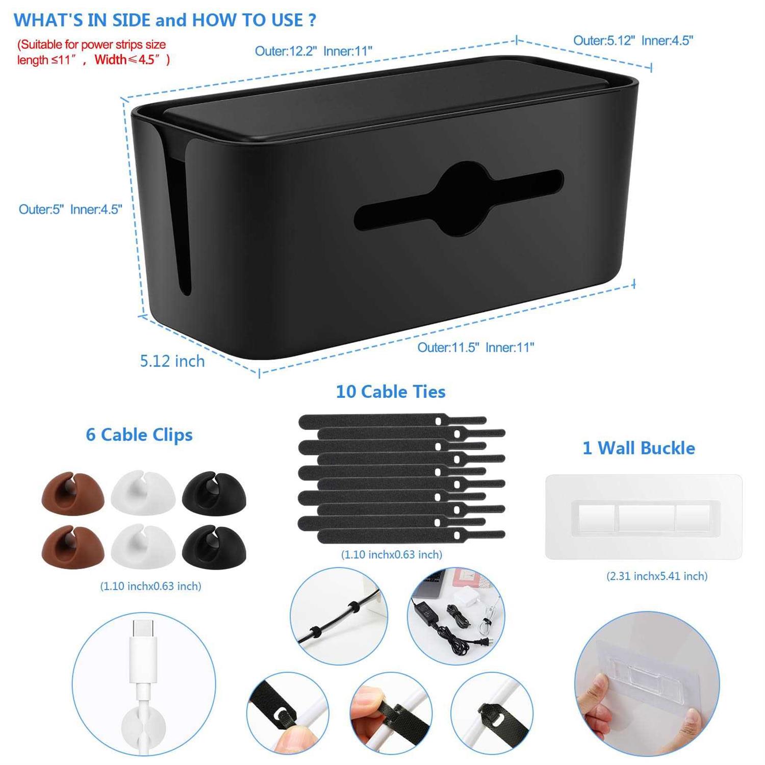 AskLady Cable Management Box,Cord Box to Hide Power Strips,Cord Organizer Hider to Conceal The Electrical Wires from Tv Computer Under Desk and on