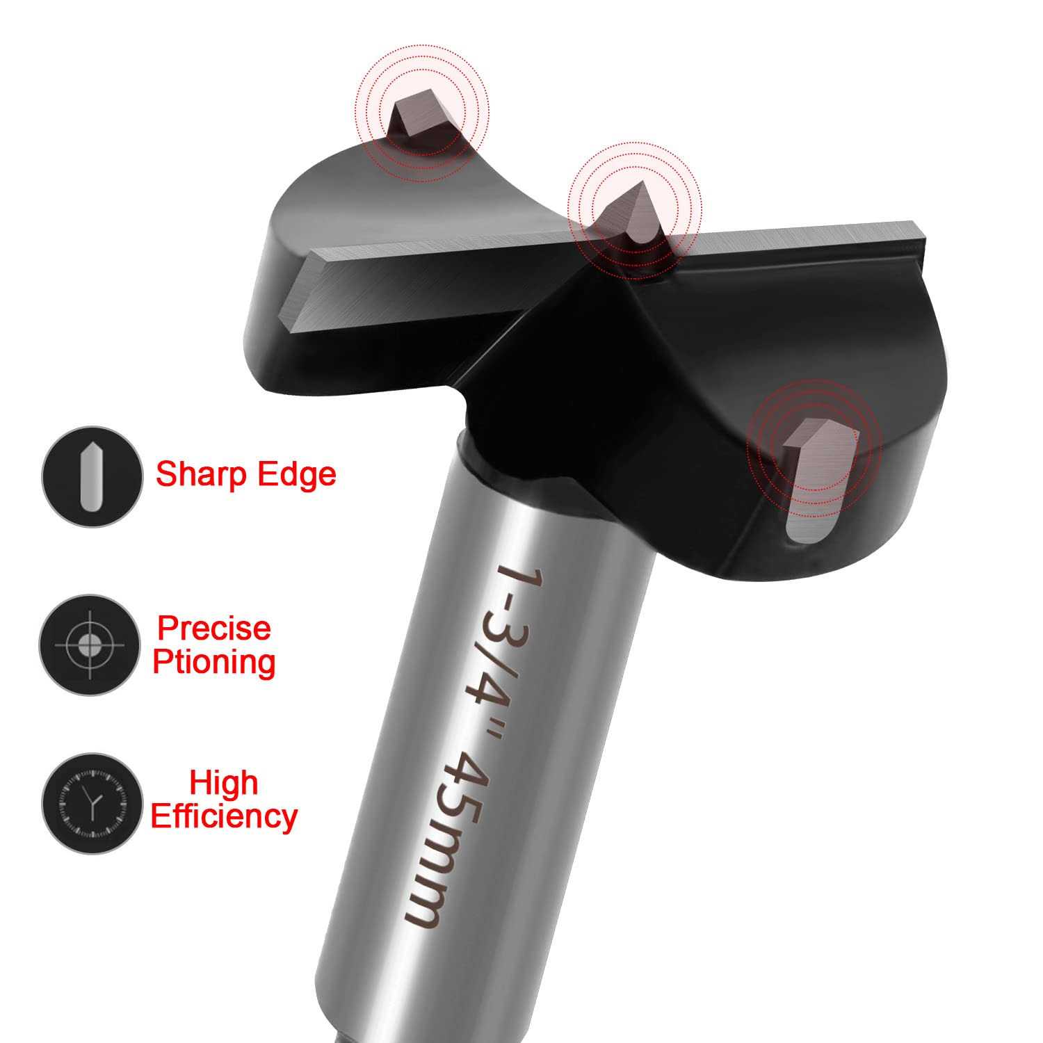 Forstner Drill Bits by ASNOMY. Details:Features: 1)Applicable Equipment: Suitable for bench drill, vertical drilling machine, CNC carving machine. 2)In design with curve, the head is good at removing the debris and working efficiently. 3)The tip is specially designed to cut through hole cleanly, great for boring concealed hinges and door clocks. Specification: Suitable for: Hard Wood, Soft Wood, Plastic Products, Plywood Material type: Tungsten Carbide Tipped + hardened steel body Hex Shank Dia.: 3/8 Inch(9.5mm) Size: 1-3/8Inch (35mm), 1-9/16Inch (40mm), 1-3/4Inch (45mm), 2Inch(50mm), 2-3/8Inch (60mm), 2-3/8Inch (70mm). Package Included: 6* Carbide Forstner Drill Bit Note: When you Processing hardwood or other hard materials should be injected with water to improve the quality and accuracy of drilling, and extend the life of the hole opener.