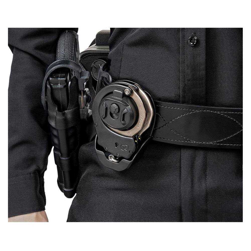 The newest innovation from ASP comes in the form of a handcuff case. The new ASP Exo handcuff case is lightweight and provides the most immediate access to your ASP Ultra Handcuffs. This handcuff case is designed to hold your handcuffs in the ready position. Every time you need your cuffs, they will be accessible, preloaded and ready to use.To deploy your handcuffs all you to do is depress the slide lock on the top and your handcuffs will release right into your hand.Fits on all belt sizes as well as MOLLE gear. As with all ASP handcuff cases a handcuff key is hidden in the back. Fits chain and hinged handcuffs. There are two different floor padsone for ASP Chain Ultra Cuffs and one for Hinge Ultra Cuffs. Simply press the selected floor pad into place for the cuffs youre carrying.