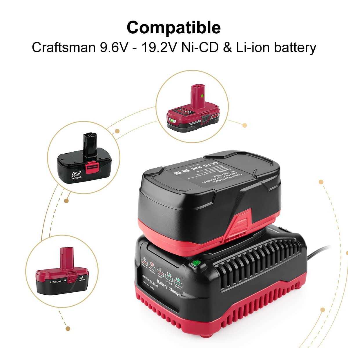 Craftsman Battery Specification:Product Type:Lithium-ion BatteryVoltage: 19.2VCapacity: 5000mAhBattery Type: Li-IonReplace Battery P/N:for Craftsman C3 19.2-Volt Battery11375, 11376, 130211004, 130279005, 11045, 120235021, 1323903, 130279003, 315.115410, 315.11485, 315. PP2010, PP2011, 315. PP2011, 315. PP2025, PP2030Compatible Tools Model:for Craftsman C3 19.2-Volt Cordless Drill Power Tool10126, 11541, 11543, 11570, 11576, 11578, 11580, 11586, 17338, 17339, CRS1000, 315.114852Craftsman Charger Specification:Product Type: Lithium-ion/NiCd/NiMh Battery ChargerInput: 100V-240VOutput: 2A