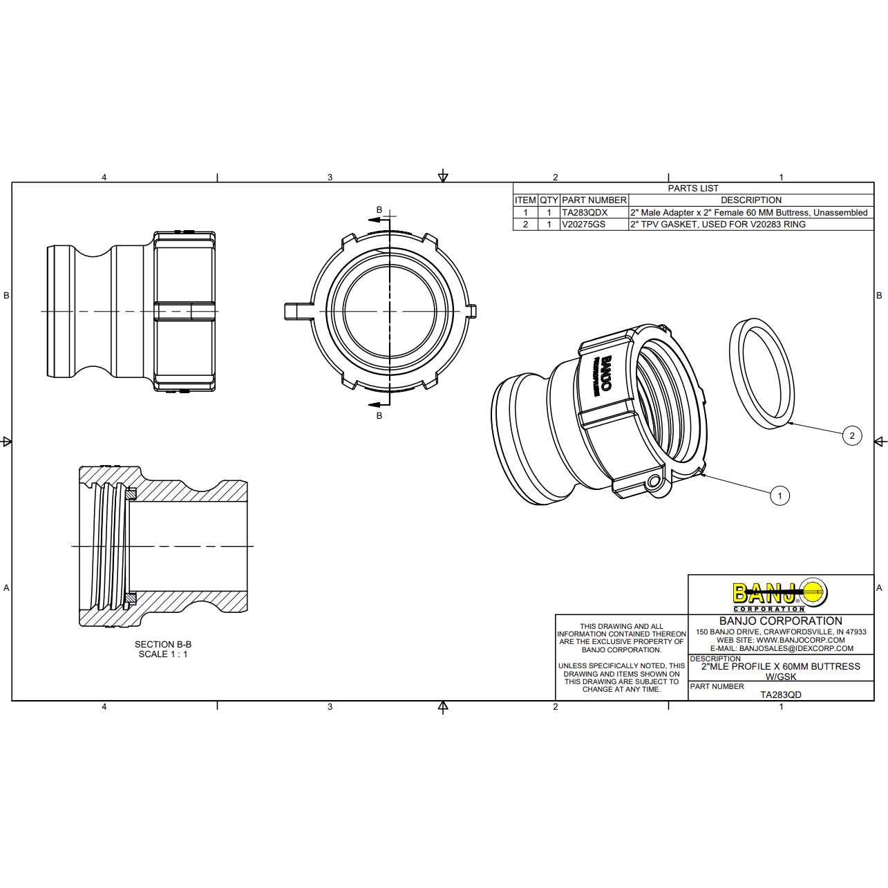 Banjo 2″ Buttress x 2″ male Adapter Tank Fitting TA283QD