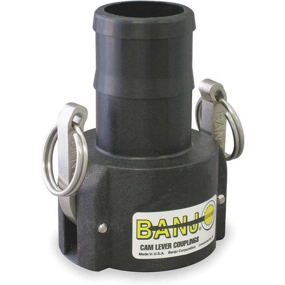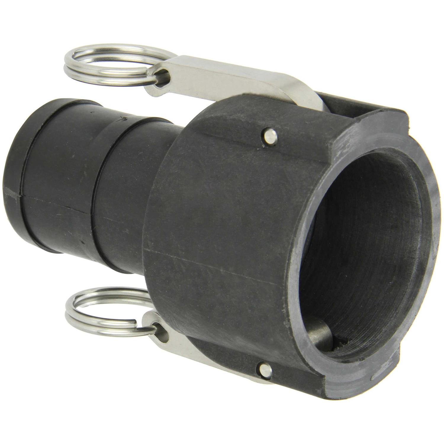 The Banjo 200C 2 Inch PET x 2 Inch Polypropylene Inch Female Cam Lock allows quick and easy connect and disconnect of tanks, pumps, fluid transfer lines and liquid processing applications. This high quality cam lever is reinforced with glass injected polypropylene, and is designed for rugged strength and durability. It is precision-molded so it guarantees a steady and accurate fit. This Banjo 200C 2 Inch PET x 2 Inch Polypropylene Inch Female Cam Lock has smooth operating finger rings that are designed for easy opening of cam levers. The pull rings and locking pins are made of plated carbon steel. This product is lighter and more chemical resistant than the metal versions. Its maximum pressure is 100 psi at 0 F; 125 psi at 70 F and 70 psi at 150 F. The temperature range is from 30 to 150 F. The Banjo 200C 2 Inch PET x 2 Inch Polypropylene Inch Female Cam Lock is more economical and superior in performance than other leading products.