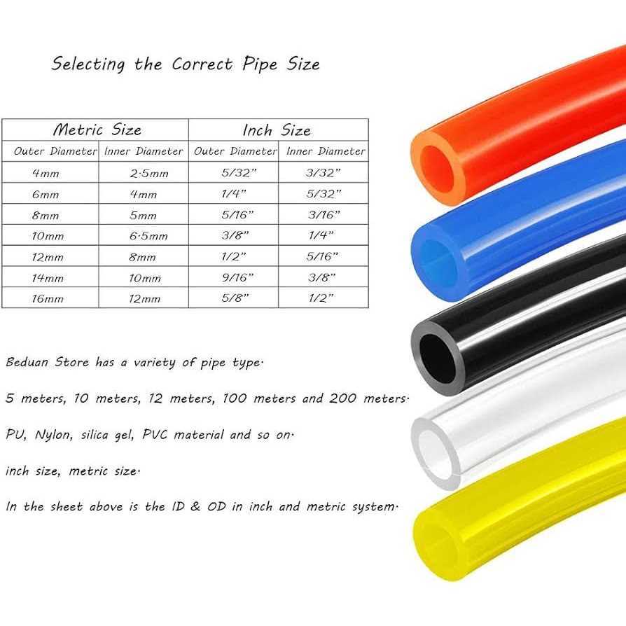 - PU Tubing Pipe Size: 10mm (Outside diameter) 6.5mm (Inside diameter) , Package Total Length:32.8 Feet (10meters).