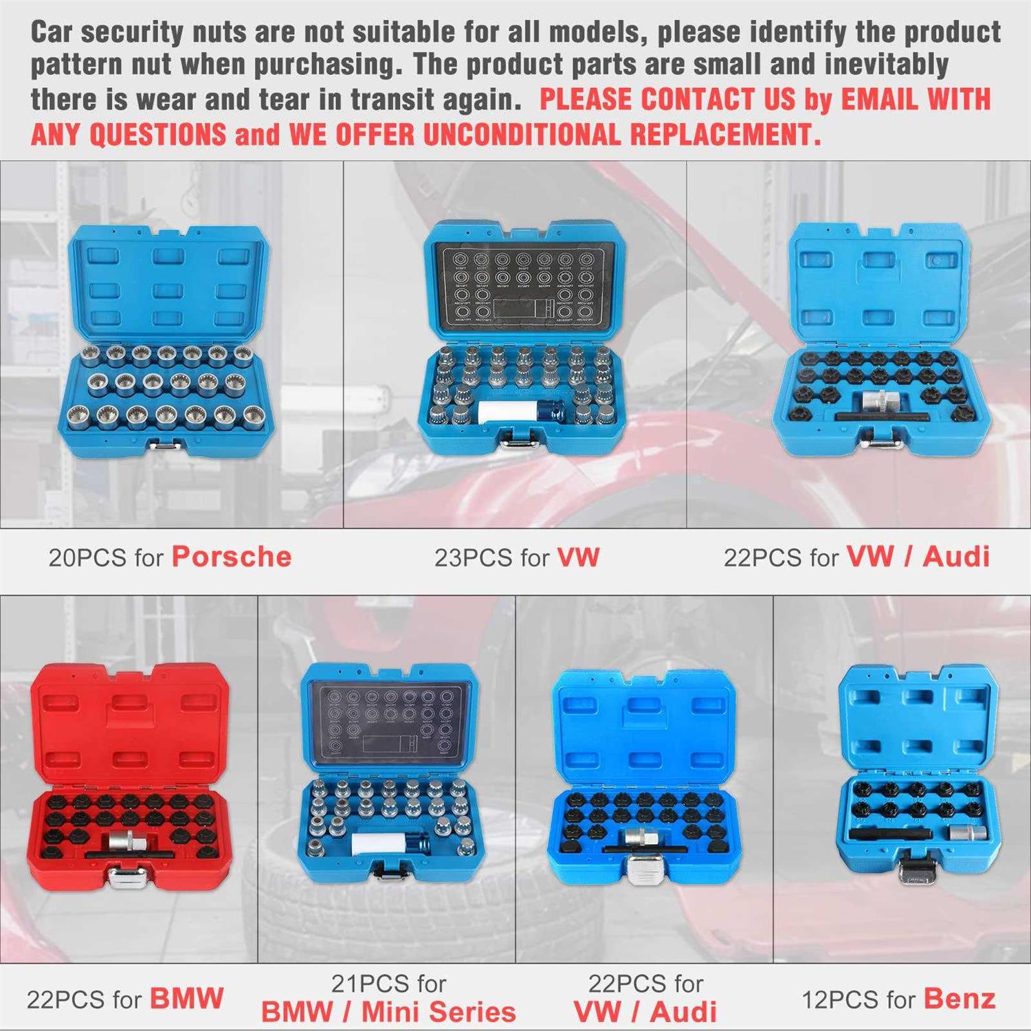 BELEY 23pcs Wheel Lock Lug Nut Remover Kit, Automotive Wheel Anti-Theft Screw Removal Key Socket Set