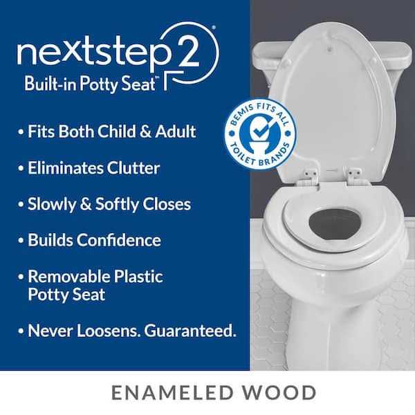 The all-new Bemis NextStep2 is perfect for your child’s potty training needs. Redesigned seat features an improved, robust hinge and new cover design. Plastic potty seat is sized to give your toddler confidence when using the toilet. Built-in potty seat secures magnetically into the cover when not needed; when potty training is finished, seat can be stored; adult seat remains fully useable. STA-TITE Seat Fastening System installs easily and keeps seat securely attached to bowl, while Whisper Close feature closes slowly and quietly. Easy Clean hinge allows for removal of seat for easy cleaning. Made with eco-friendly materials and processes, BEMIS brings innovation to everyday life.