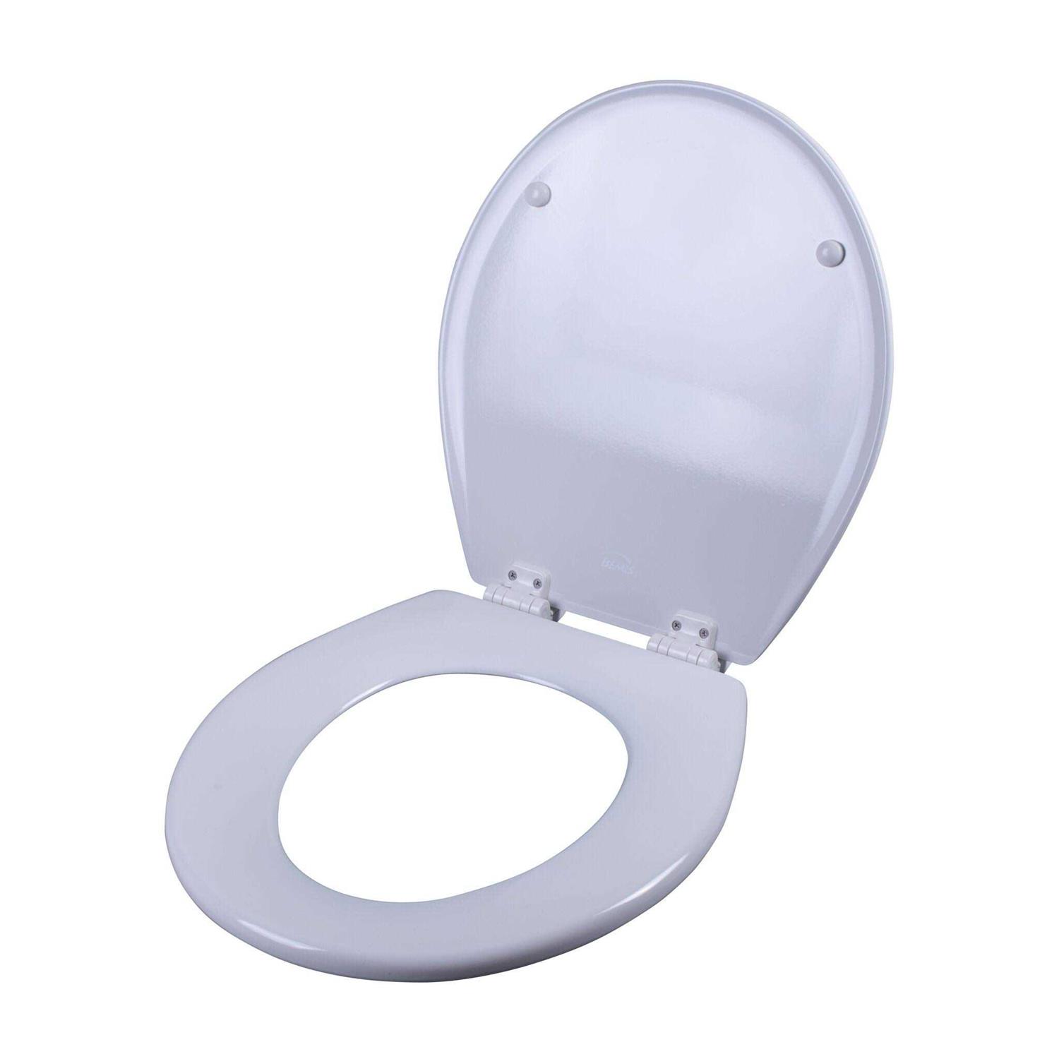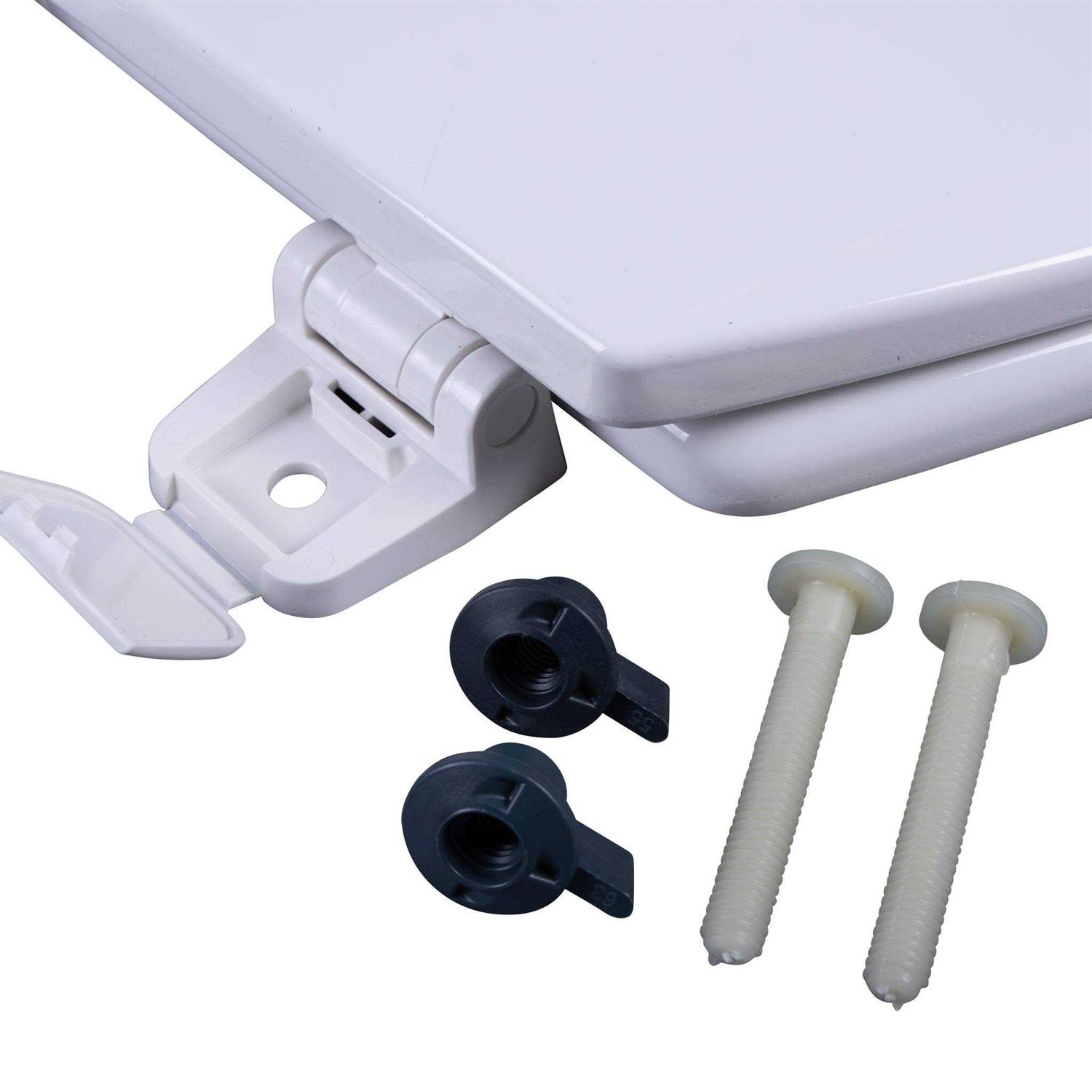 Improve the look and functionality of your bathroom with the Bemis Toilet Seat TC50TTA. It’s made of molded wood and features color-matched bumpers for a coordinated look. This round marine toilet seat is fitted with a Top-Tite hinge that eliminates wobbling. It also has a corrosion-free nut and a bolt that fits marine or trailer bowls, as well as portable units.
