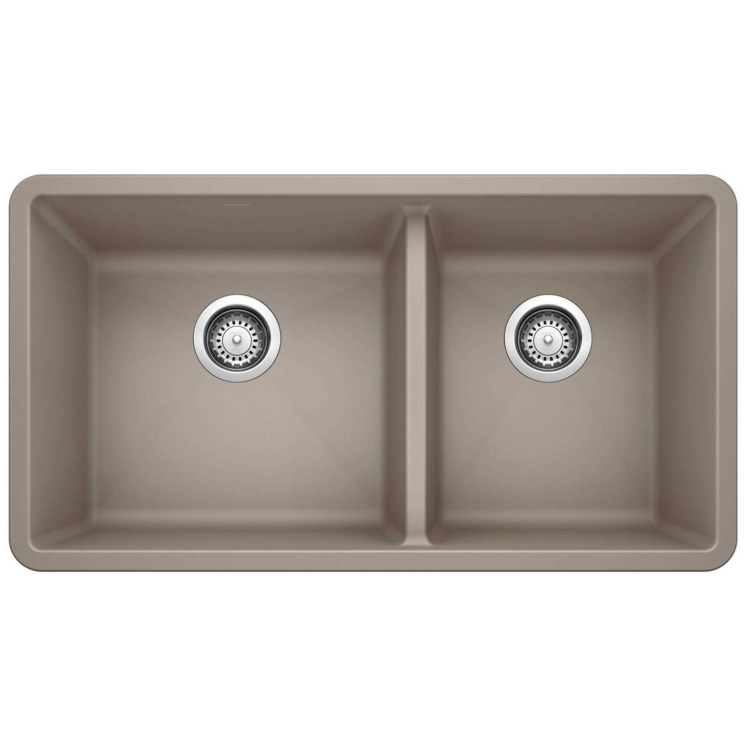 Blanco 441296, 33 inch Precis Undermount Double Bowl Kitchen Sink, Truffle