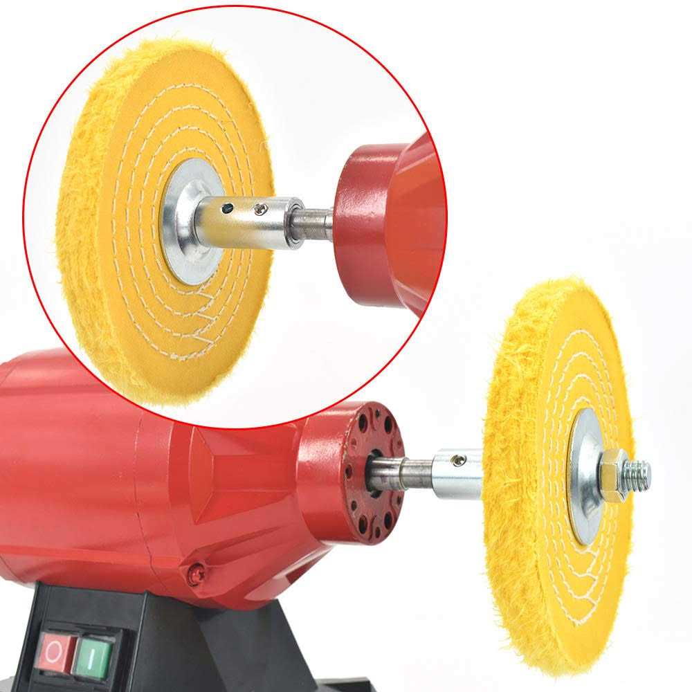 Size: 1/2″ & 5/8″ Motor Shaft Arbor Extension Adaptor /br /br Package includes: /br 1 set 1/2″ & 5/8″ Motor Shaft Arbor Adaptor: /br ——Main body 1pc, inner adjust tube 1pc, tighten screw 1pc, washer 2pcs, hex nut 1pc, L-shape hex wrench 1pc /br /br Detail size: /br Tube side OD x ID x L:7/8″ x 5/8″ x 2-5/8″; /br Inner adjust tube ID:1/2″; /br Screw side dia x L:1/2″ x 2-1/4″; /br Hex nut dia x thickness:13/16″ x 3/8″; /br Washer dia x thickness: 2-1/8″ x 1/16″; /br L-shape hex wrench: long part 2-1/4″, short part 7/8″. /br /br /br Q & A: /br /br What’s the function of this shaft arbor adaptor designed for? /br This Shaft Arbor Extender is designed to convert 1/2″ or 5/8″ shaft electric motor to 1/2″ threaded shaft buffing machine, or transfer 1/2″ or 5/8″ Bench Grinder shaft to 1/2″ thread shaft. /br /br What kind of wheels it is suitable for mounting? /br This Electric Motor Arbor Threaded Shaft Adapter suitable for mounting Buffing wheels, Polishing wheels, Grinding Wheels, Wire brush wheels, as long as the arbor hole is 1/2″. /br /br How to use? /br Attach the tube side to your motor arbor or bench grinder shaft, fasten the hidden screw to make it fastness, use the 2pcs washers sandwich cinch the buffing/grinding wheels etc, then tighten the nut and start buffing work.