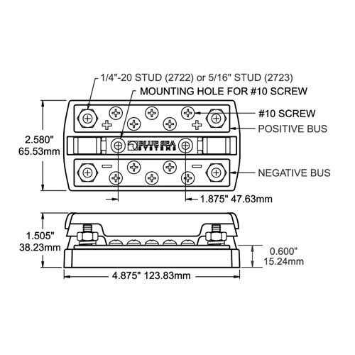 Blue Sea – 2722 DualBus Plus 1/4″ Stud, 5 x 10-32 Screw Terminal