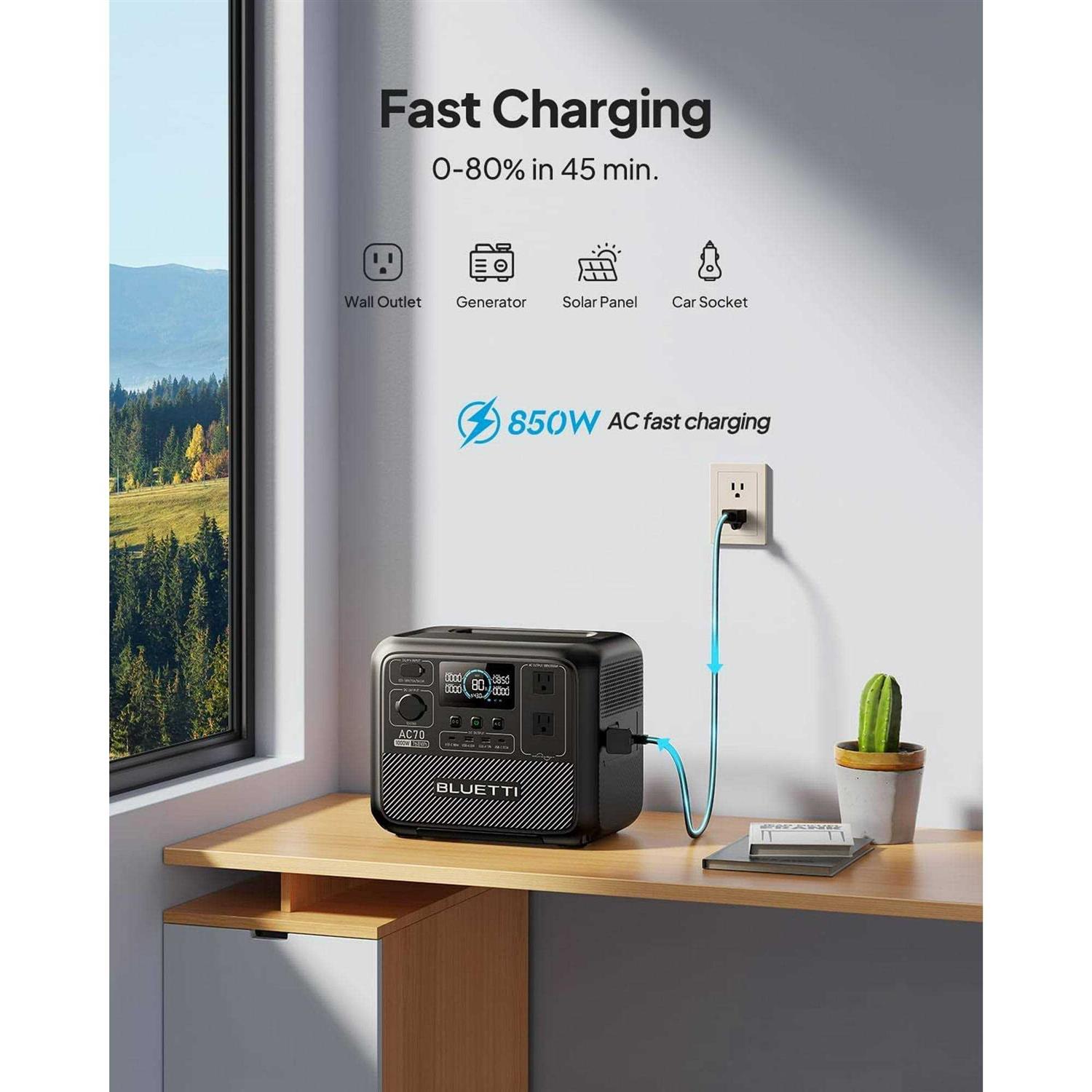 BLUETTI AC70 Portable Solar Generator 768Wh LiFePO4 Power Station