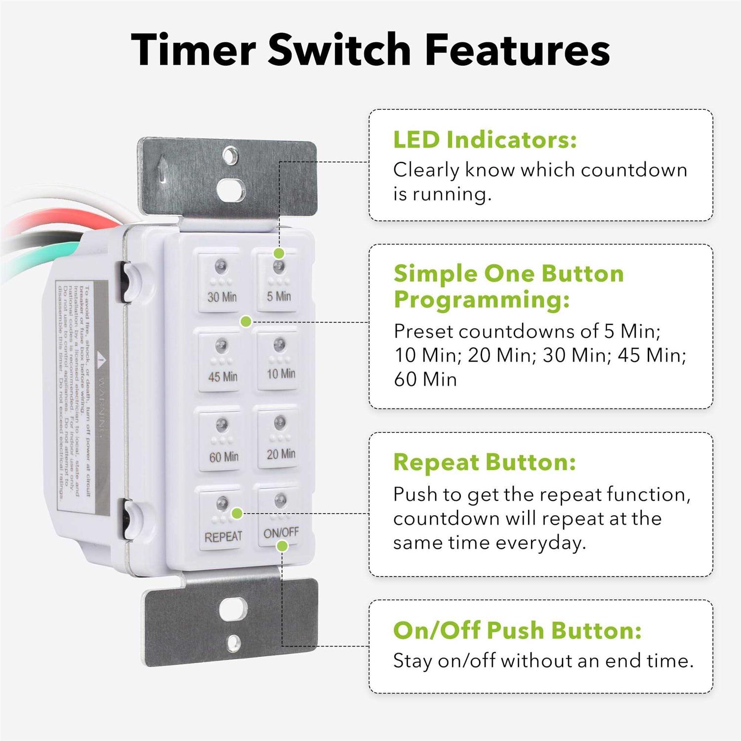 BN-LINK countdown timer switch for lights replace standard single pole wall switches for energy savings throughout the home. Timer light switches indoor control lights or fans OFF when the selected time expires. Turning lights ON with the timer switch button is accomplished by pressing the desired time selection or ON/OFF button. Lights can be turned off before the time-out setting expires by pressing the ON/OFF button. To change the time-out setting, press the desired time selection button and the bathroom timer switch for exhaust fan light will reset to that countdown interval.