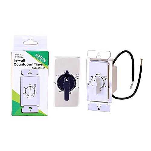 BN-LINK 60-Minute In-Wall Spring Loaded Countdown Timer automatically turns off fans, lights, motors, heaters and other energy consuming loads. Installs conveniently in single or multi-Gang electrical wall boxes and easily replaces SPST toggle switches. Fits any single or multi-Gang decorator or toggle switch plate. Package includes a timer device, knob, and connection accessories, and 2 free faceplates designed to fit either toggle or decorator style switch plates. This light switch timer will ensure your bathroom exhaust fans, basement lights, bathroom heat lamps, and kitchen fans turn off after a set amount of time. All with the simple turn of the dial. This timer switch is compatible with compact fluorescent lighting. The BN-LINK timer switch for bathroom fan brings simplicity to your life, by maximizing convenience, security, and energy savings.