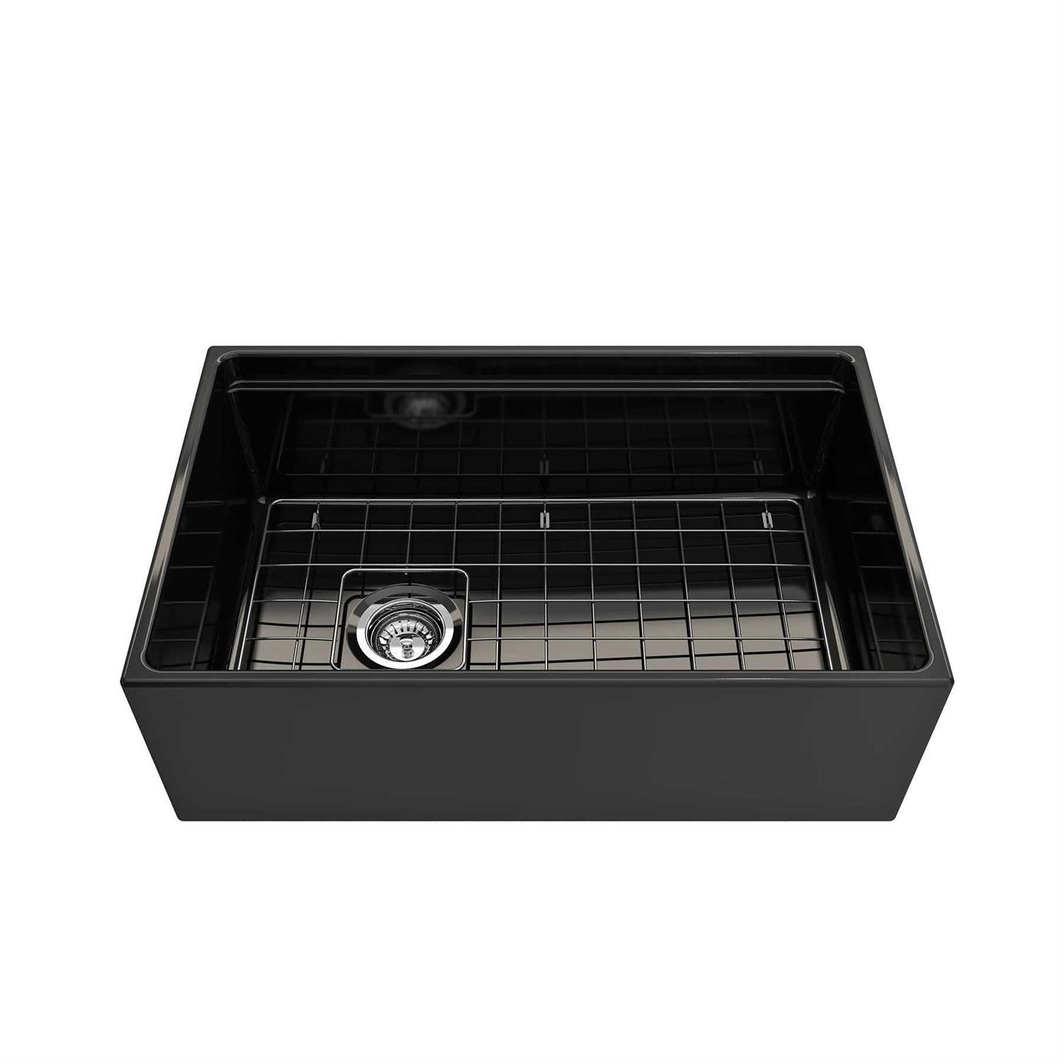 BOCCHI Contempo 30″ Apron Front Step Rim Fireclay Single Bowl Kitchen Sink, White
