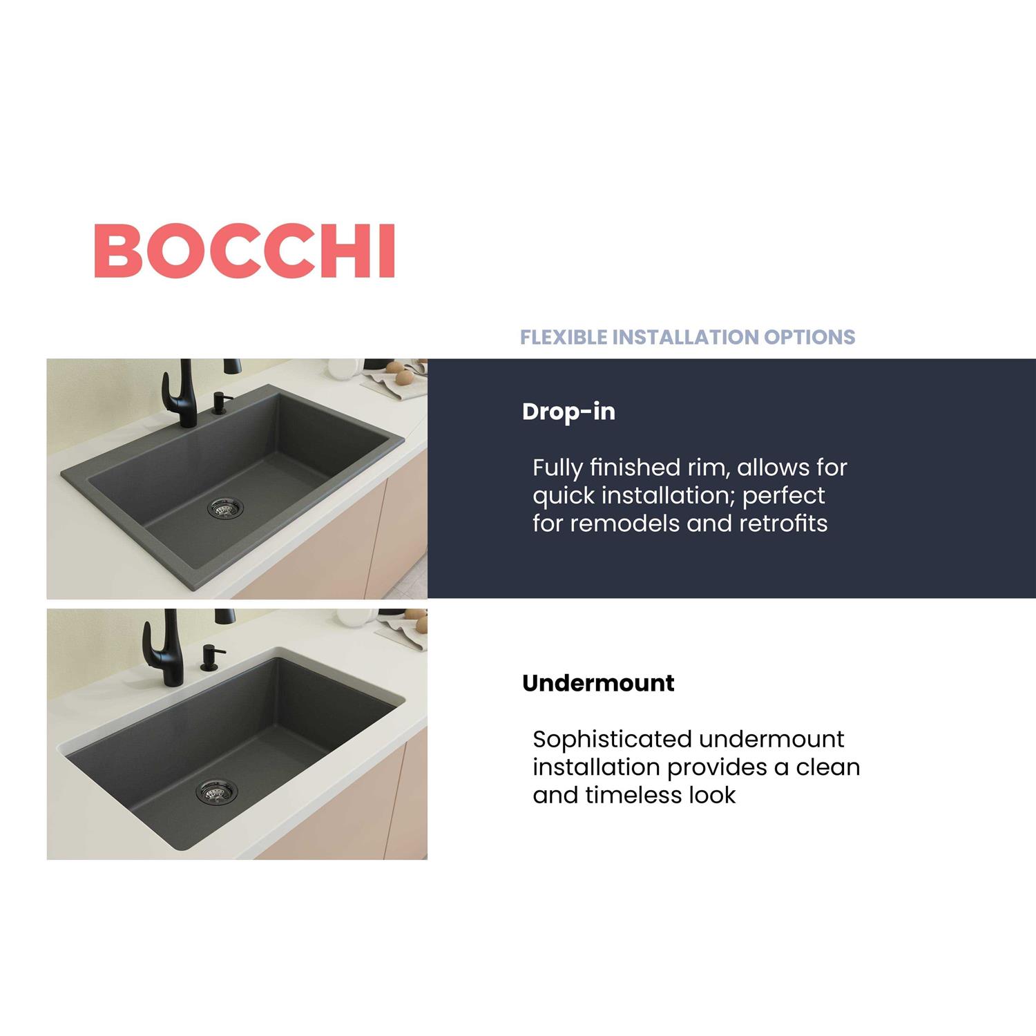 Be the first to review “Bocchi Campino Uno 33 Single Bowl Dual Mount Granite Kitchen Sink with Strainer 1604”