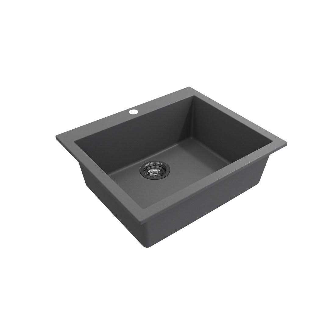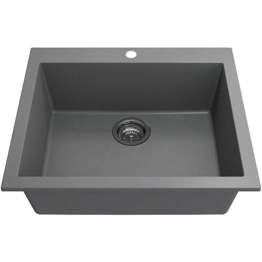 BOCCHI Campino Uno Dual Mount Granite Composite 24 in. Single Bowl Kitchen Sink with Strainer in Concrete Gray