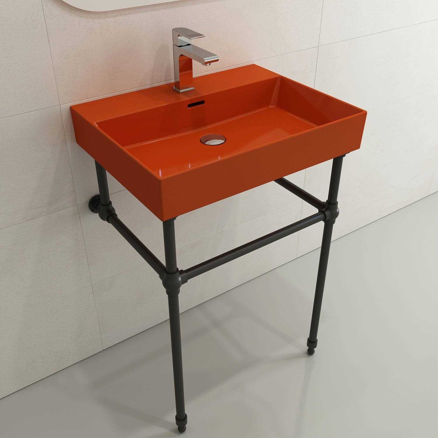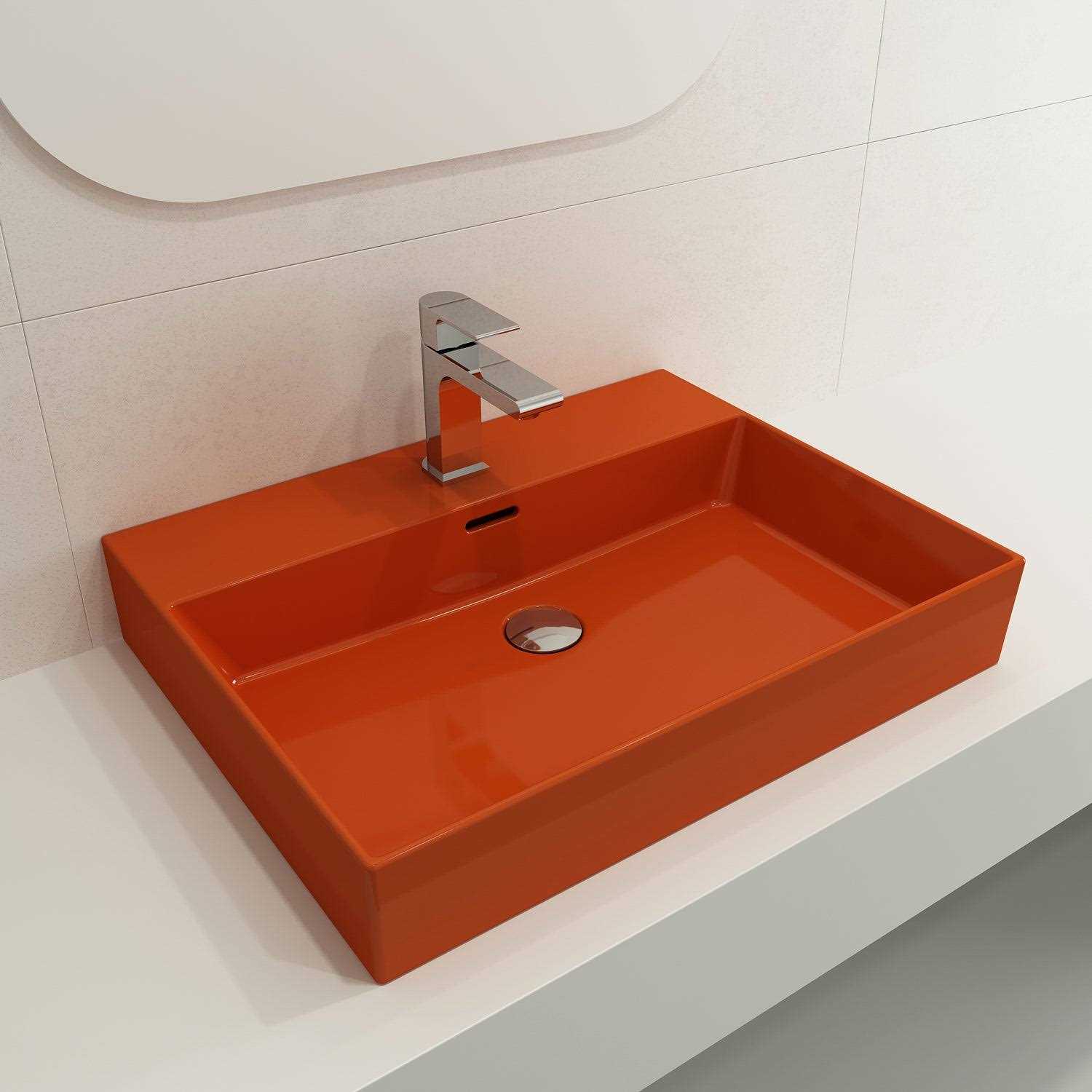 BOCCHI 24″ Milano Wall-Mounted Sink Fireclay 1-Hole with Overflow, Orange