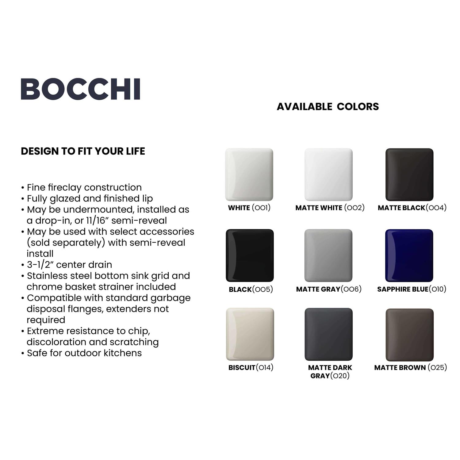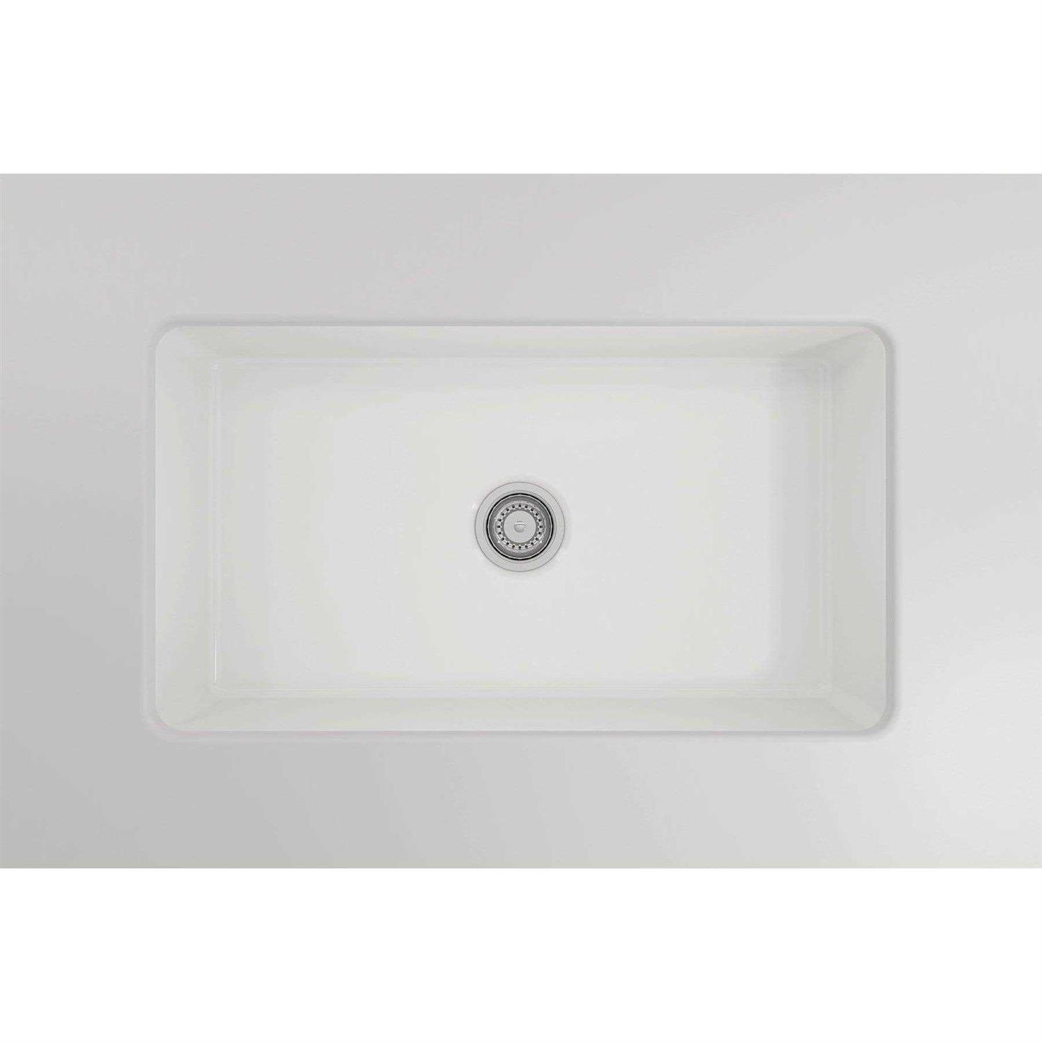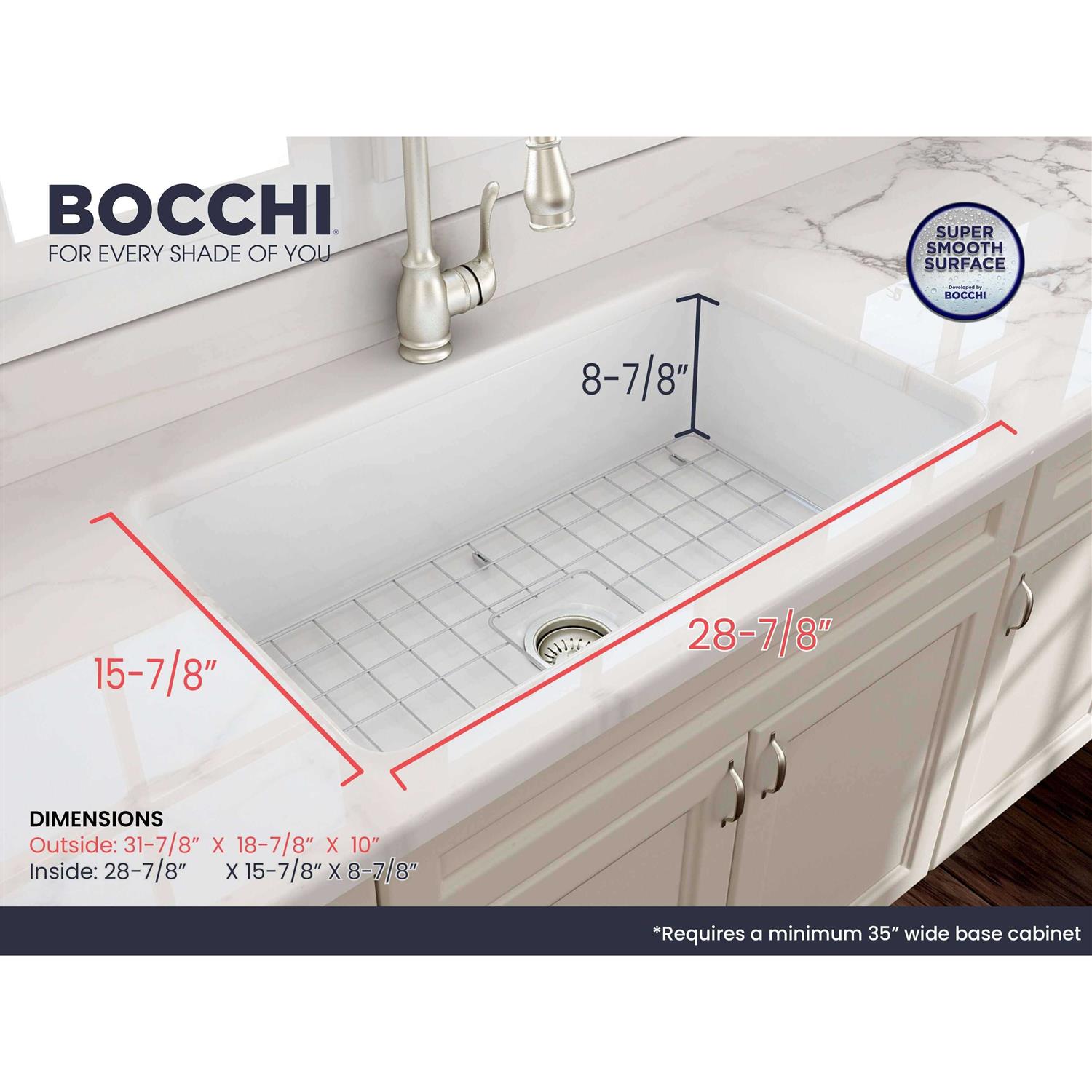 BOCCHI Sotto Undermount Fireclay 32 in. Single Bowl Kitchen Sink with Bottom Grid and Strainer