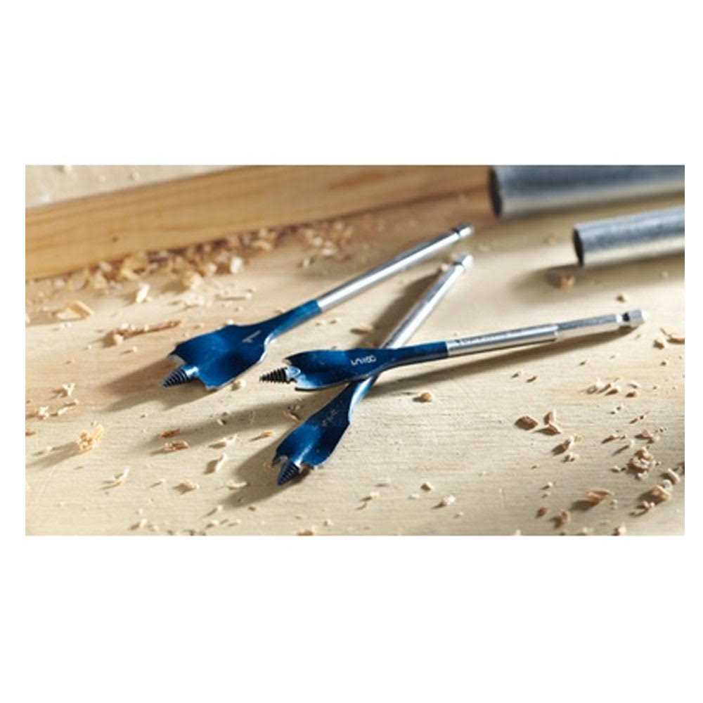 Daredevil spade bits are designed for professional users seeking speed, ease of use and hole quality. A full-cone threaded tip pulls the bit through the material with less effort and vibration than other spade bits. The contoured paddle delivers faster chip removal; hex shank with power groove reduces slippage. Up to 10X faster than conventional spade bits.