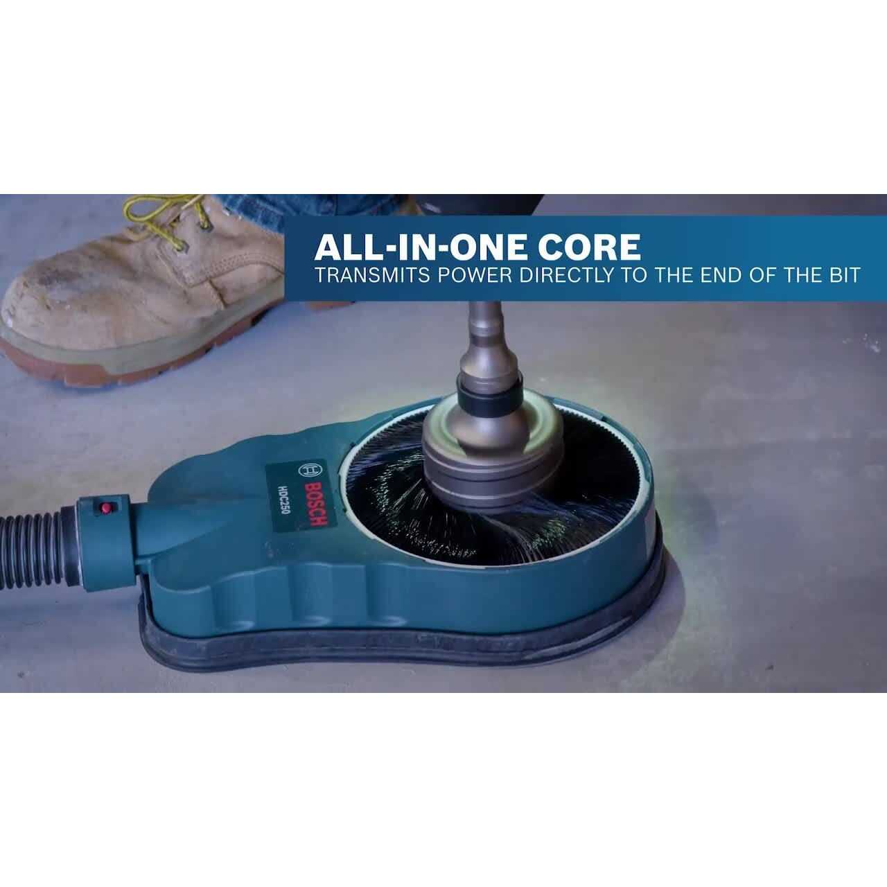 Bosch SDS-max carbide-tipped rotary hammer core bits offer an integral shank for better power transmission. Bosch SDS-max rotary hammer core bits with wave design go beyond the range of standard bits and allow smaller hammers to drill larger holes. Wave design transfers energy to bit more effectively for up to 40 percent faster drilling versus previous design.