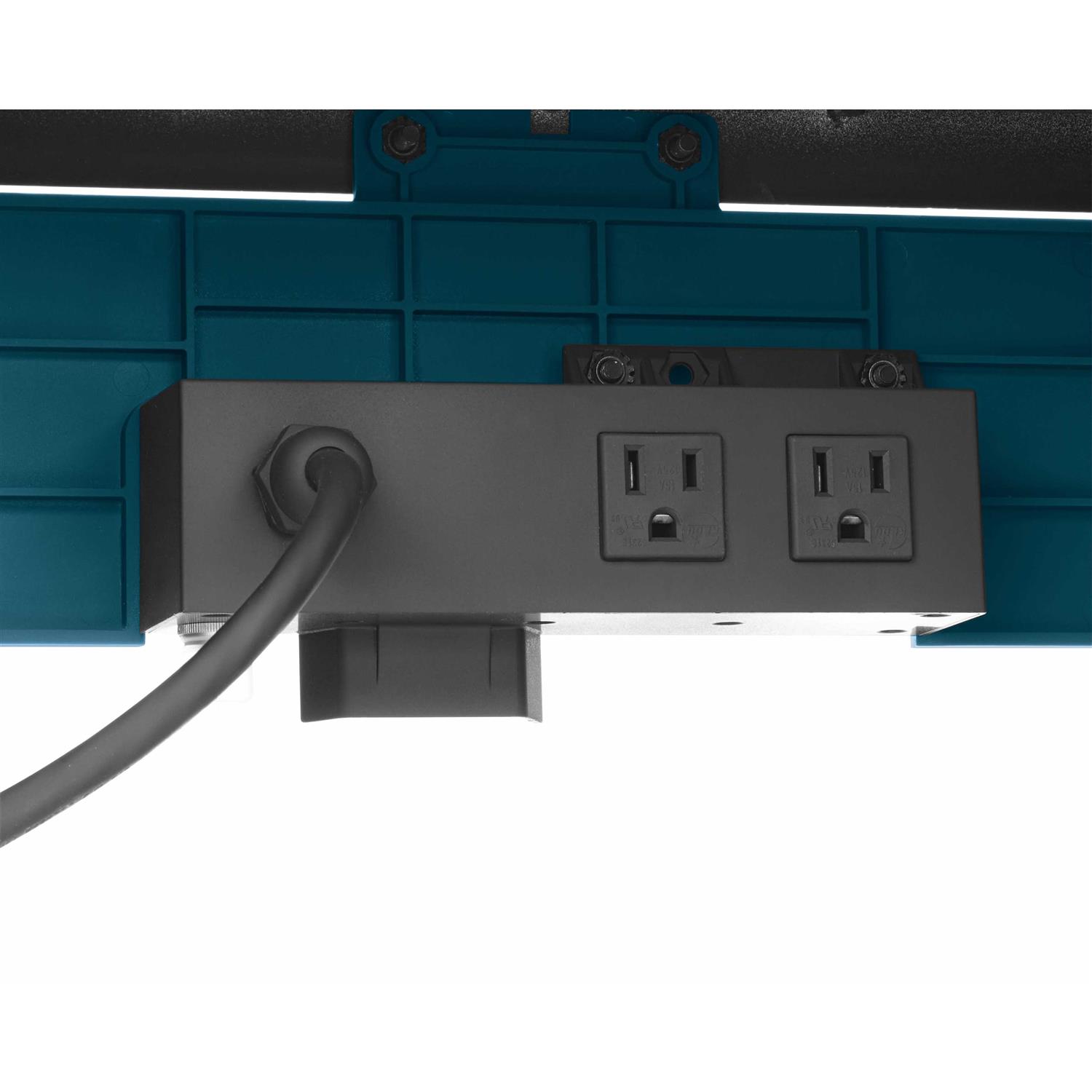 With two adjustable featherboards producing extra kickback control, the 15-Amp Bosch Bench Top Router Table provides a solid, durable work surface. The Bosch adjustable router table measures 25.5 inches wide and 15.8 inches long, stands 14.5 inches from the floor and weighs 30 pounds. Its size easily supports larger work pieces. A pre-drilled 27-inch by 16-inch molded aluminum mounting plate lets you secure a variety of different routers. The plate also remains rigid for increased accuracy. The bench features a front panel On/Off switch with a security lock for your safety, as well as storage and cord pockets. Clean up debris conveniently with the dust port, which connects to 2 1/2-inch vacuum hoses. Attach additional equipment with the dual power outlets.