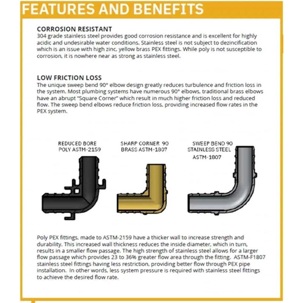 Stainless Steel PEX Crimp fittings are great for all PEX applications. They are premium quality and durable. Featuring high corrosion resistance, and are ideal for areas with high acidity and anywhere water quality is an issue.