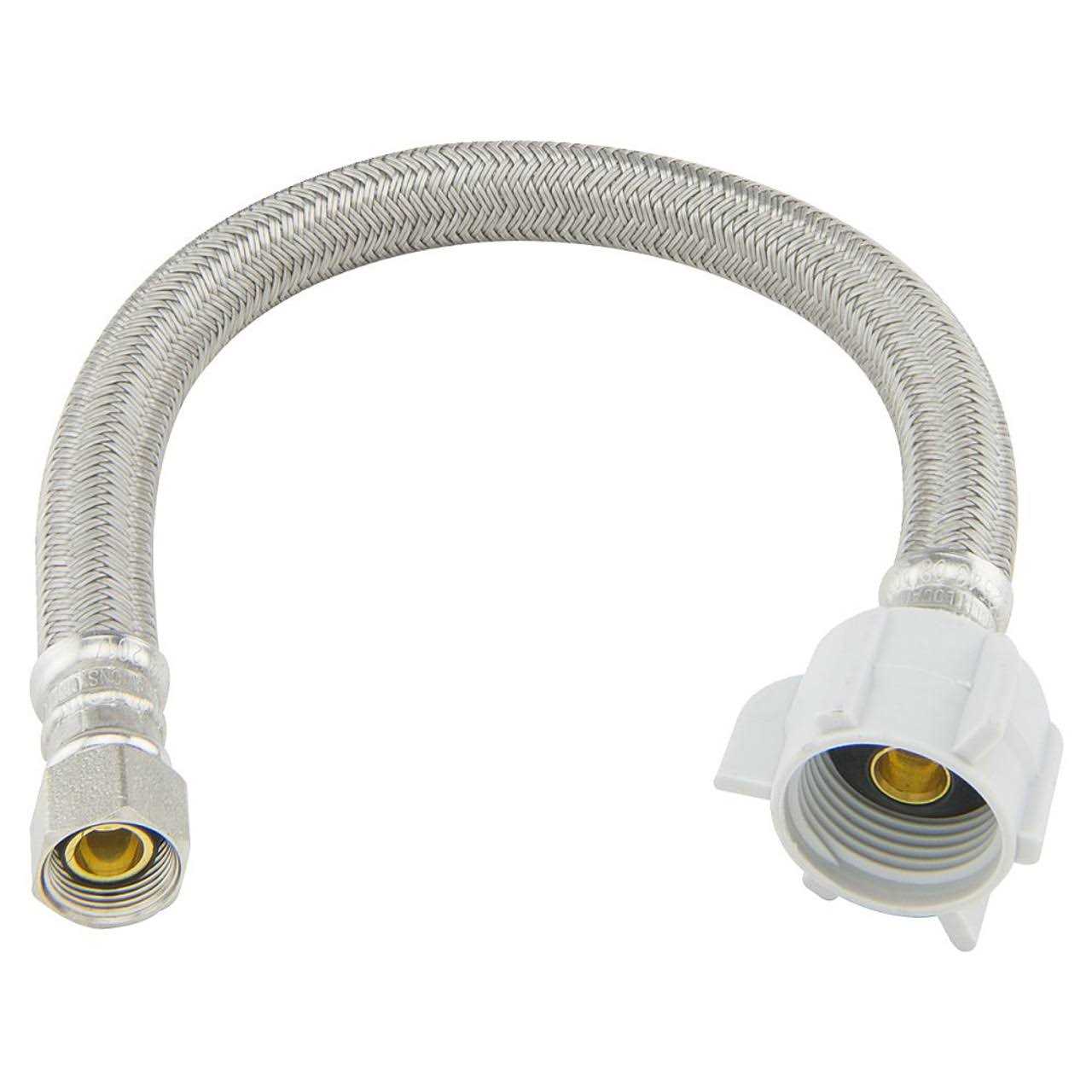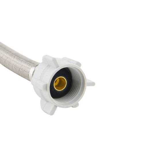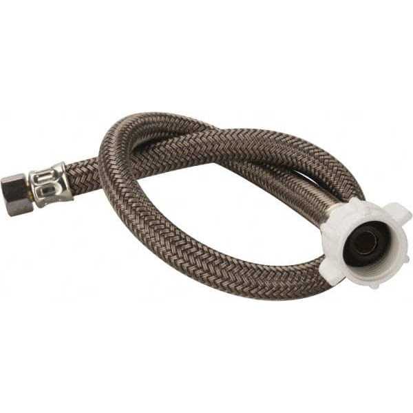 Used to connect the water supply to your toilet, this connector features a high tenacity, multi-filament yarn, protected by a special polymer coating for optimum corrosion resistance and durability. On the inside, our tough PVC tubing resists attack by chlorine, chloramines and other corrosive elements. The braided polymer fibers are designed to bend freely without kinking or crimping. Connection to toilet features hand-tighten wing-nut for quick and easy installation.