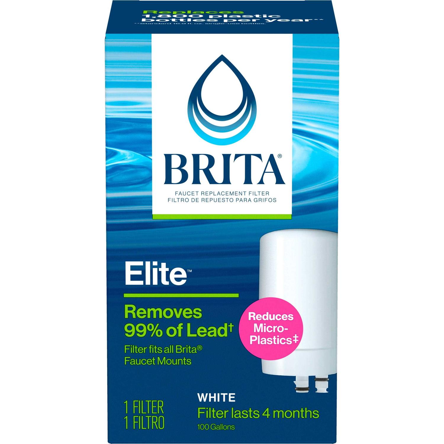 Drink healthier, great-tasting tap water with the Brita Elite Faucet Water Filter. This BPA-free replacement water filter reduces chlorine taste and odor, asbestos, 99% of lead and other impurities in your drinking water. You can replace up to 750 standard 16.9-oz. plastic water bottles with just one filter, so you can stay hydrated, save money and reduce plastic waste. A handy filter indicator lets you know that the faucet water filter system is working and reminds you when it’s time for a water filter replacement. This Brita water filter can be replaced with one easy click. One filter lasts up to four months or 100 gallons. Brita Faucet Mount Water Filter Systems fit standard 55/64 inch size faucets and include adaptors for 13/16 inch and 15/16 inch sizes. These water purifier units do not fit pull-out or spray-style faucets. Get great taste, less waste and more savings from Brita.