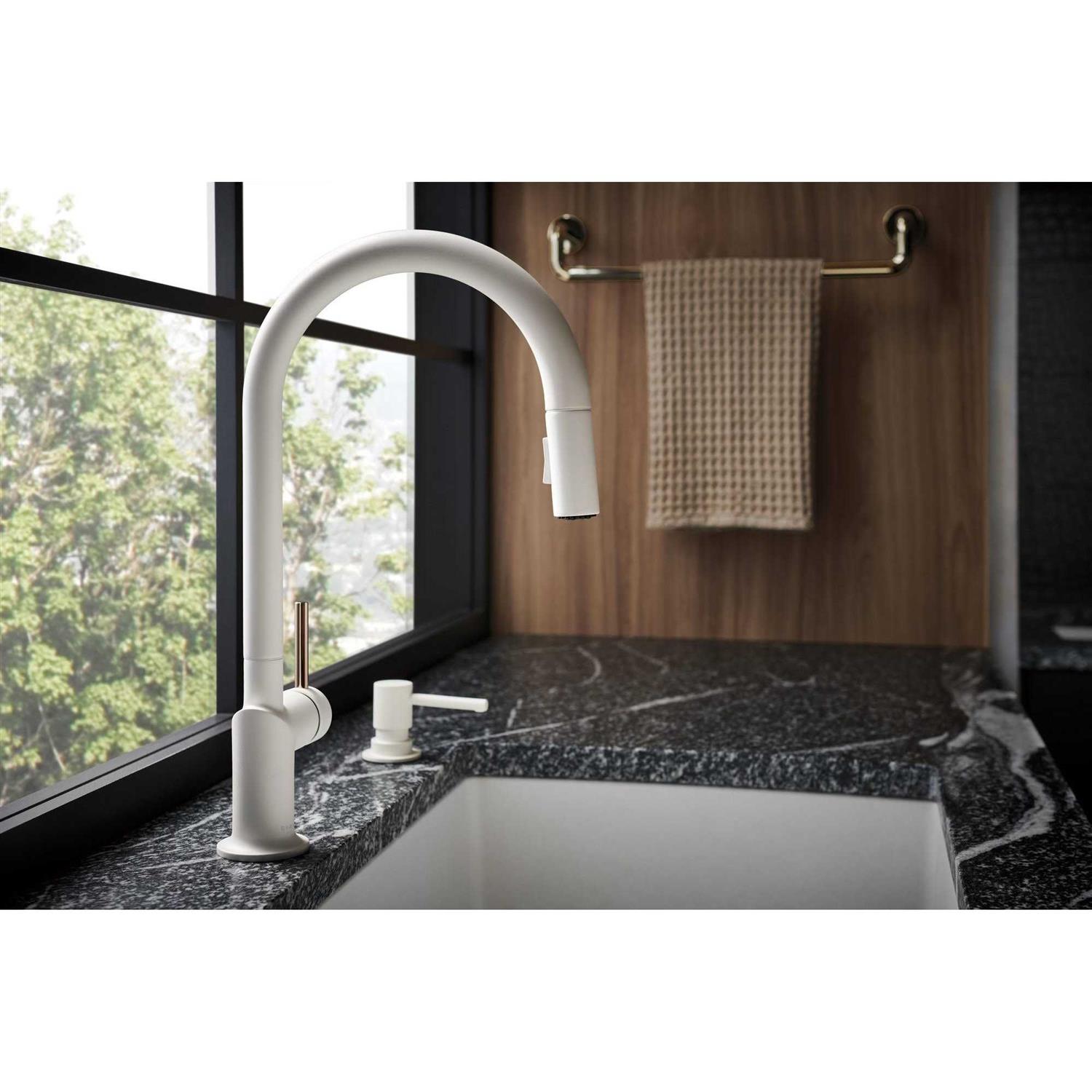 Amidst a world of noise and flash, the streamlined silhouette of the Jason Wu for Brizo kitchen collection in a striking Matte White finish stands out with a vibrance all its own.