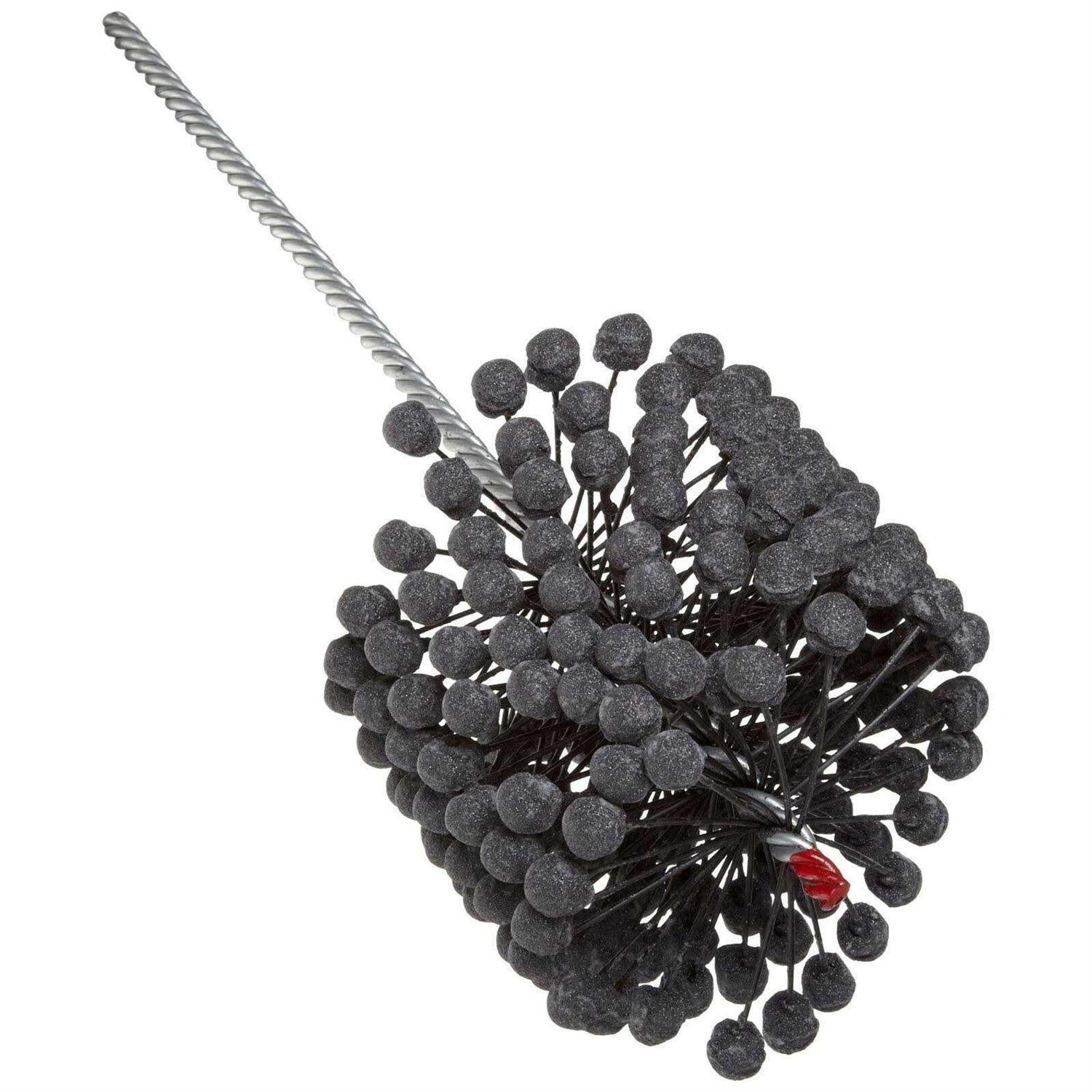 The Flex-Hone tool was originally created by Brush Research Manufacturing to deglaze cylinder walls in automotive applications. Brush Research embraced the benefits of a plateau finish and pioneered the concept of plateau honing culminating in the introduction of the Flex-Hone tool in 1972. The Flex-Hone has gained many nicknames over the years and including ball hone, ball style hone, flexihone, dingleberry hone, bead brush, glaze breaker and glaze buster. Flexible honing with the Flex-Hone tool produces an oil holding cross hatch pattern and a true plateau finish free of cut, torn and folded metal. Any type or size of cylinder can benefit from the Flex-Hone. These abrasive bead style brushes are produced in standard diameters from 4mm to 36 inches. Nine abrasive types are offered including silicon carbide, aluminum oxide, boron carbide and diamond allowing the tool to be tailored to finish any base material. A choice of 11 different grit selections are available for precise control of finish parameters. The elimination of peaks results in rapid ring seating, better oil control, reduced seepage in hydraulic and pneumatic applications and provides better seal performance and longer seal life. Successful applications include firearm chambers, shotgun barrels, musical instruments, combustion chambers, air compressors, pumps, valve bodies, valve guides, brake cylinders, wheel cylinders and the list goes on and on. Flex-Hone tools are also very effective for deburring cross drilled holes, port radiusing and edge blending. Because of its unique construction, the Flex-Hone is self-centering, self-aligning, and self-compensating for wear so it does not require an elaborate set-up or special training. Deburring can be effectively automated and combined in the machining process to allow a complete cylinder finish in one operation or it can be employed as a secondary operation with equal results.