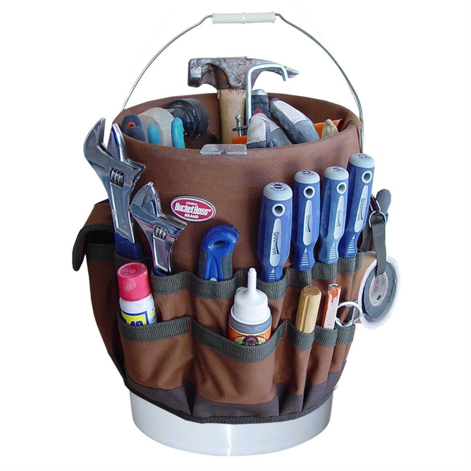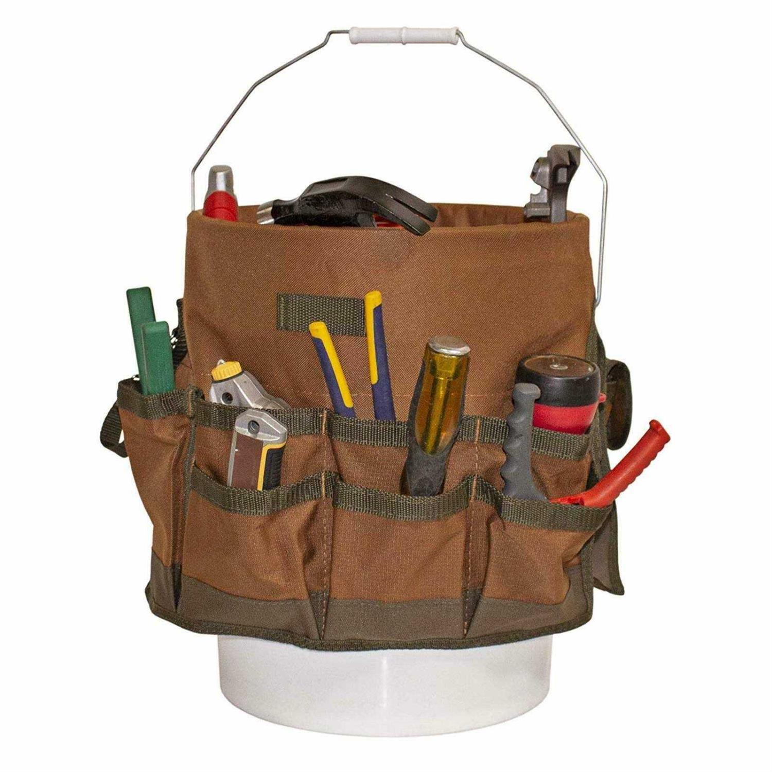 The Bucket Boss Bucketed BTO is the original bucket tool organizer. The BTO gives you the ability to hold plenty of your hand tools in a 5 gallon bucket. Made of poly rip stop/600D poly material and built with 30 pockets, the Bucketed fits any 5 gallon bucket. There are also 3 interior loops for hammers, drills, pry bars and long tools.