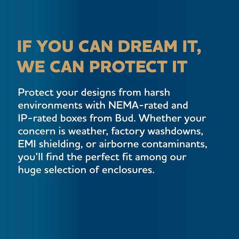 Used to equalize internal and external temperature and pressure, and to prevent internal condensation. Vent comes with housing, gasket, and locking nut Design to meet IP32 protection level Made of Gray Polycarbonate (PC) reinforced with 10% fiberglass BUD INDUSTRIES: Bud has an extensive line of affordable products ranges from small metal and plastic electronics enclosures to large cabinet racks. Many of our enclosures meet IP 67/NEMA requirements.