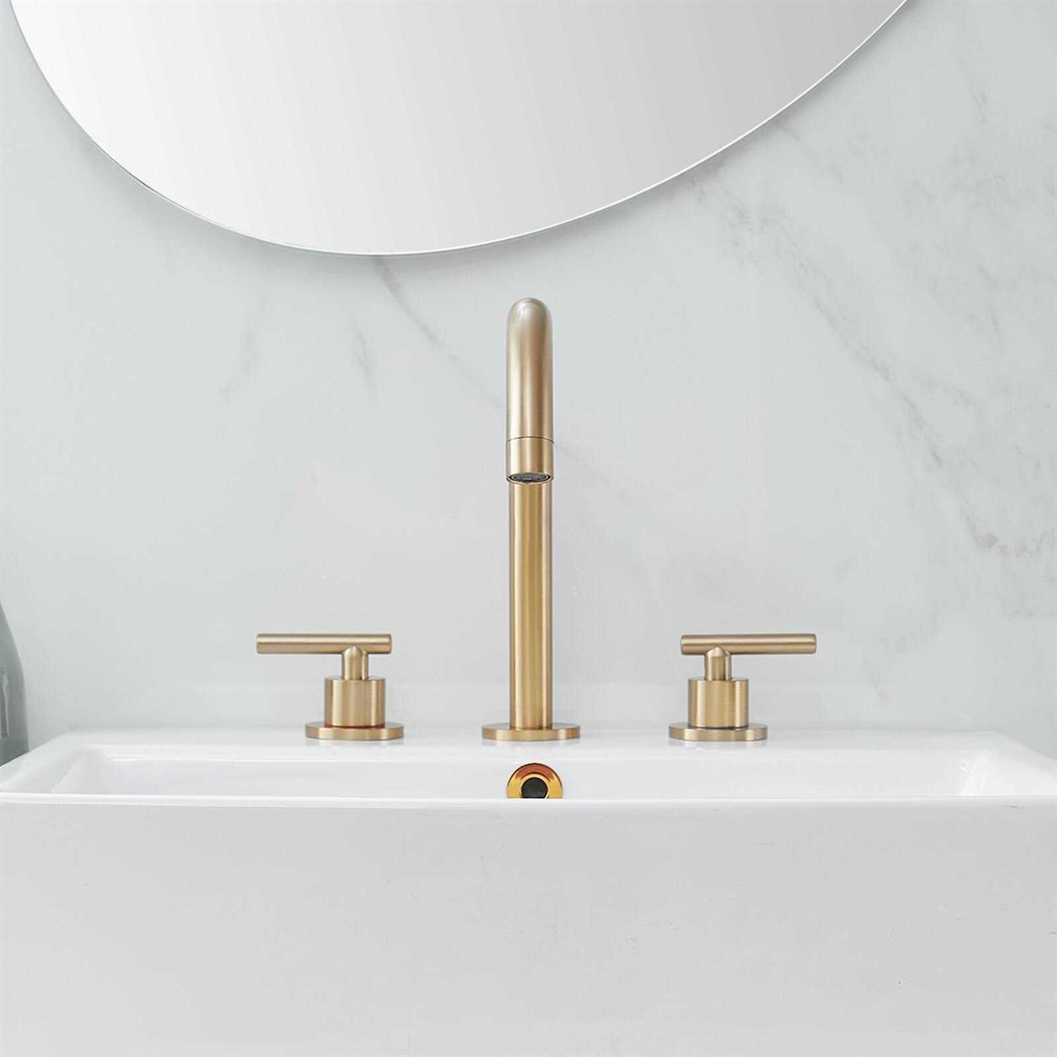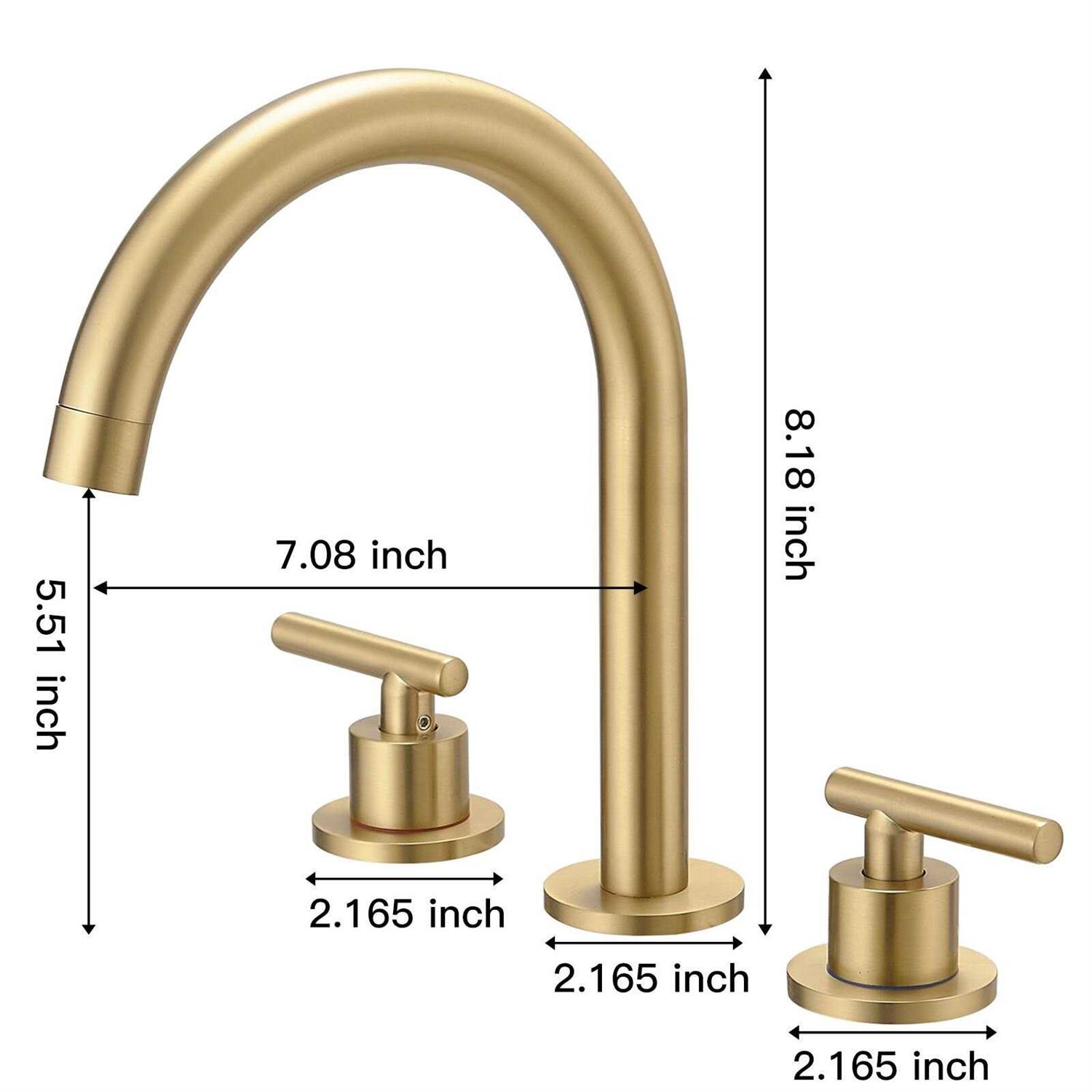 BWE 8 in. Widespread Double Handle High-Arc Bathroom Faucet Water-Saving with Drain Kit in Brushed Gold 16441-BG