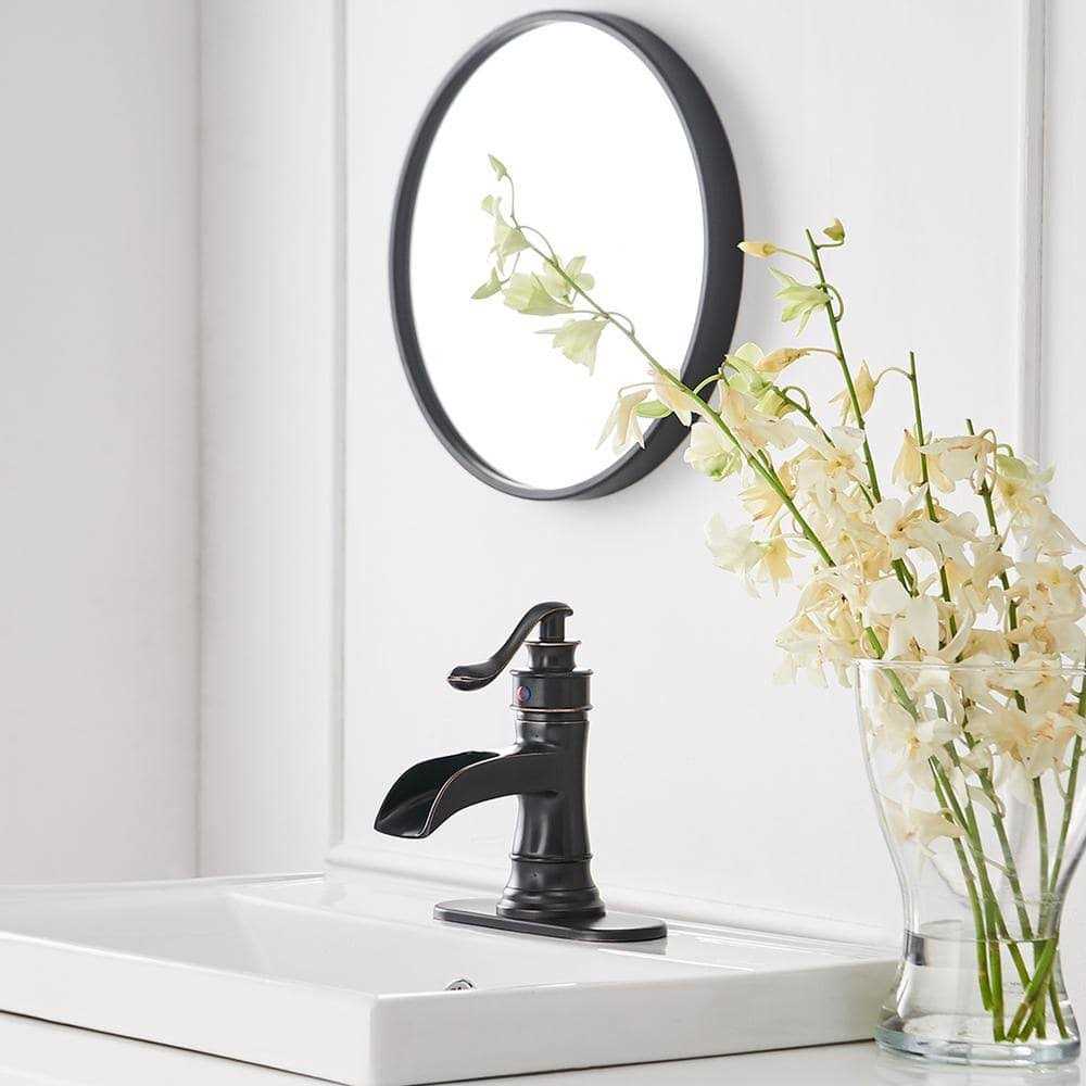 BWE Waterfall Bathroom Faucet Single-Handle Single Hole Sink Faucet Deck Mount Oil Rubbed Bronze Vanity Faucets