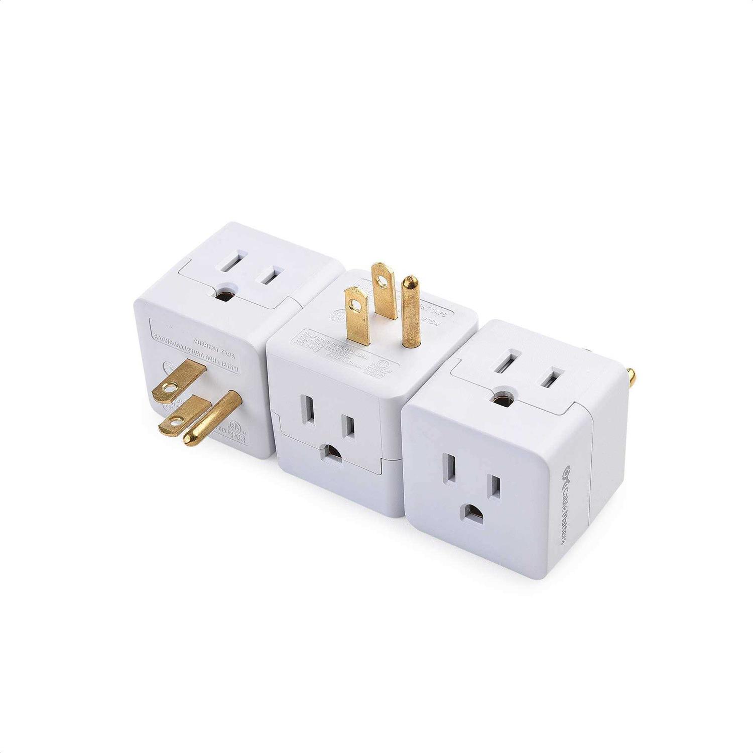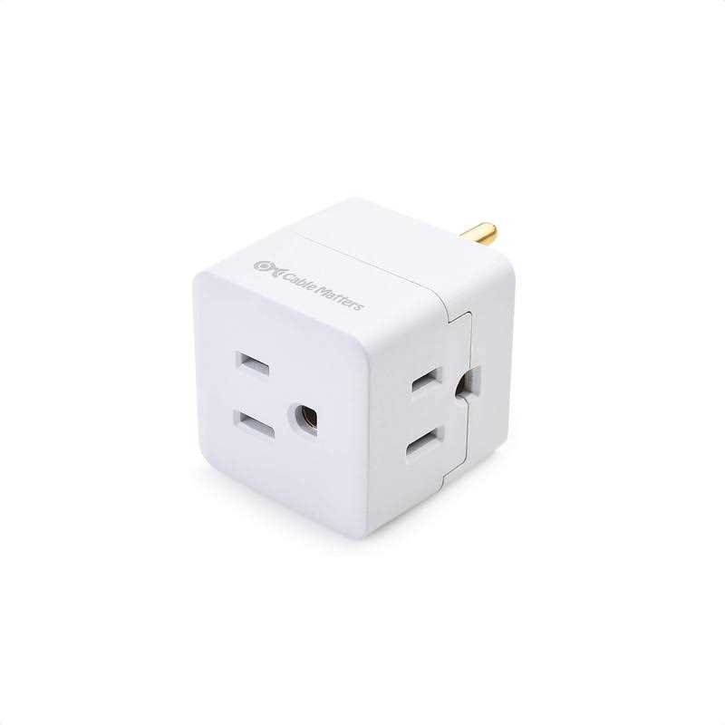 The Cable Matters 3-Outlet Grounded Cube Wall Tap expands the capacity of an existing outlet, especially in tight spaces. 90-degree rotated outlets on the wall tap accommodate three cables without blocking. This AC adapter provides a unique solution for connecting an upright nightlight into AC receptacles that are mounted horizontally.