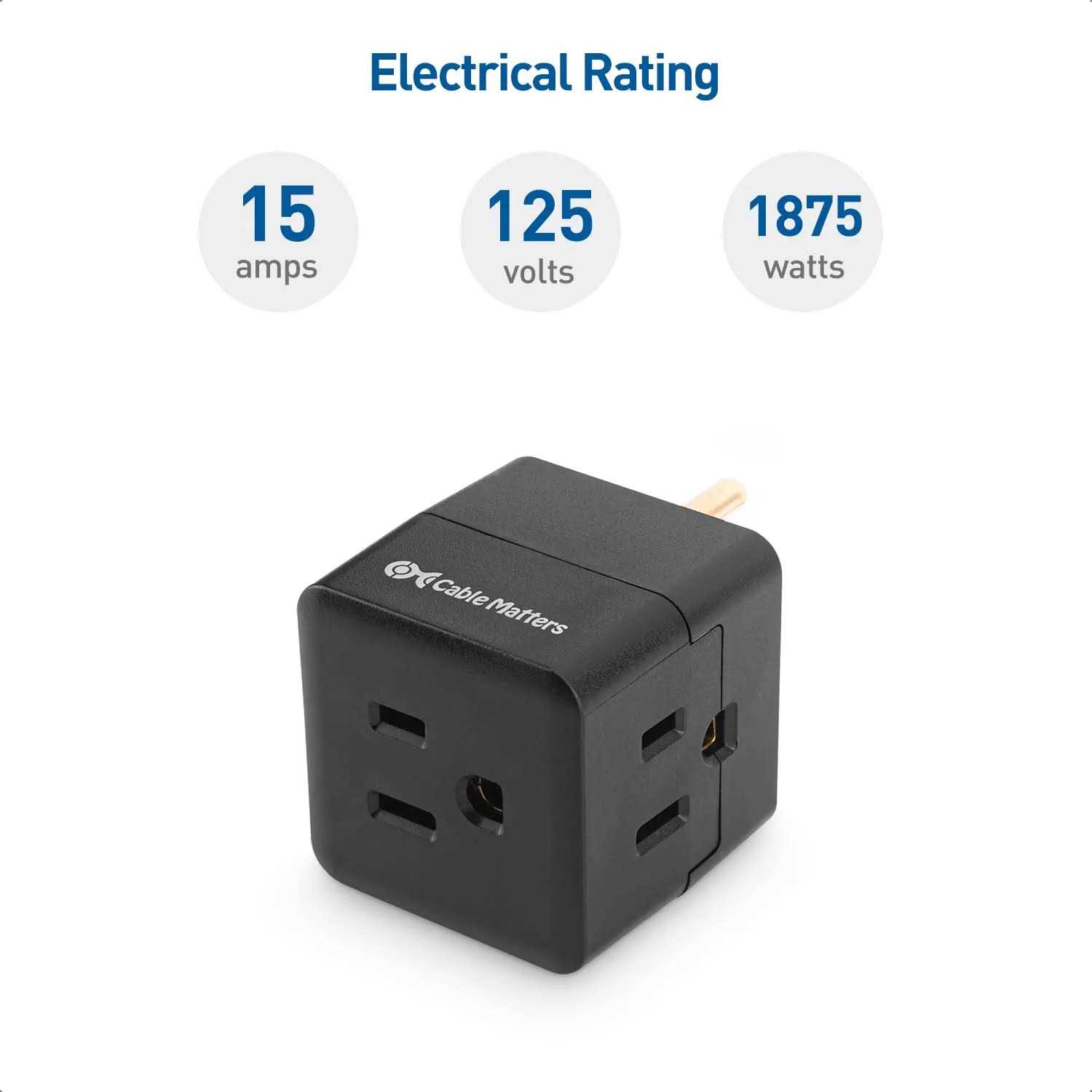 [ul Listed] Cable Matters 3-Pack 3 Outlet Wall Adapter, 3 Outlet Power Cube Tap, Outlet Splitter / 3 Way Plug Adapter in Black
